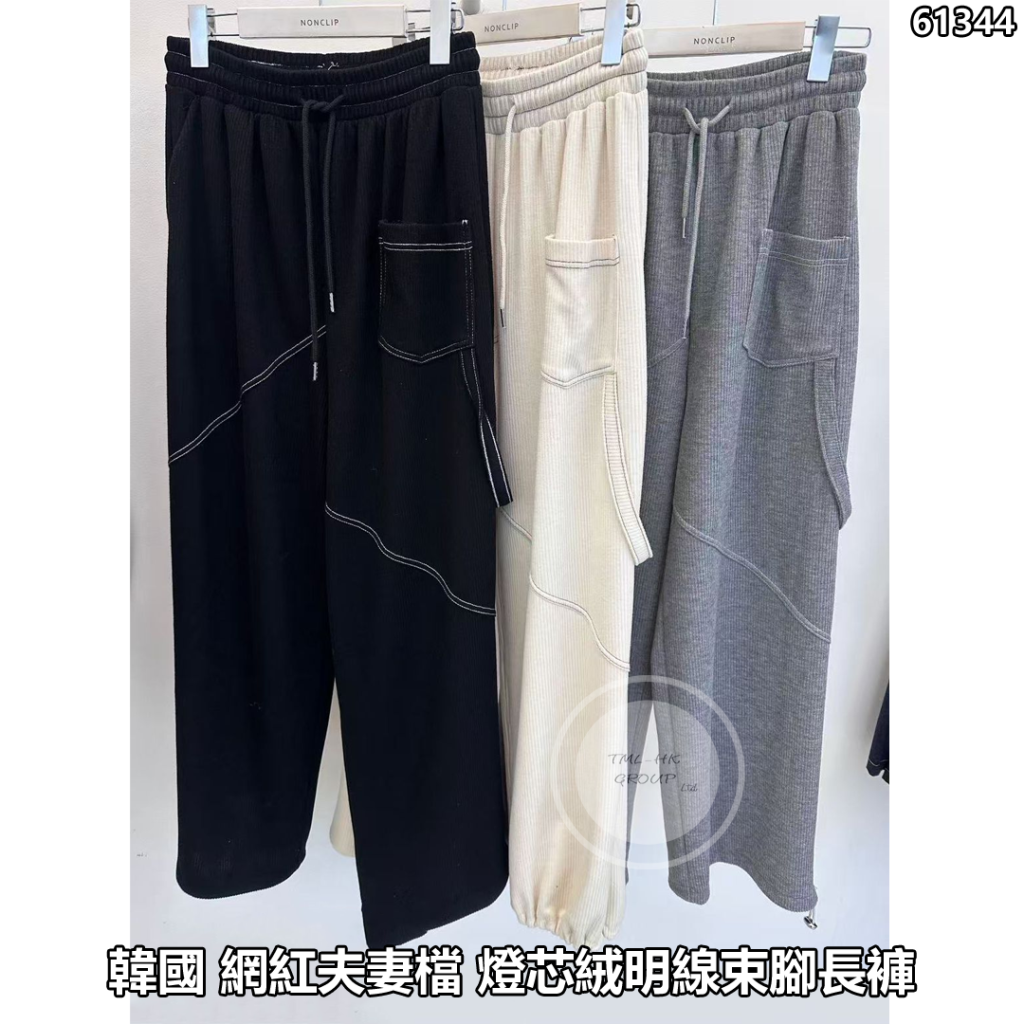 韓國 網紅夫妻檔 薄燈芯絨明線束腳長褲【買滿5件包郵 | 買滿4件以上每件減$10 | 5/2截單 | 預計3月初至中到貨 | 20260202A(61344.)】