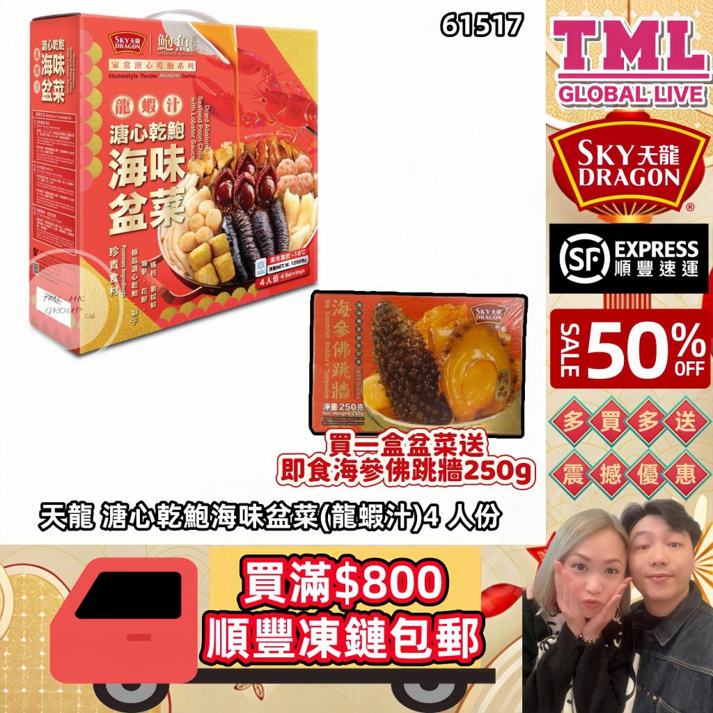 天龍 溏心乾鮑海味盆菜(龍蝦汁)4 人份【買滿$800包郵順豐凍鏈 | 29/1截單 | 預計2月中到貨 | 20260124A(61517.)】