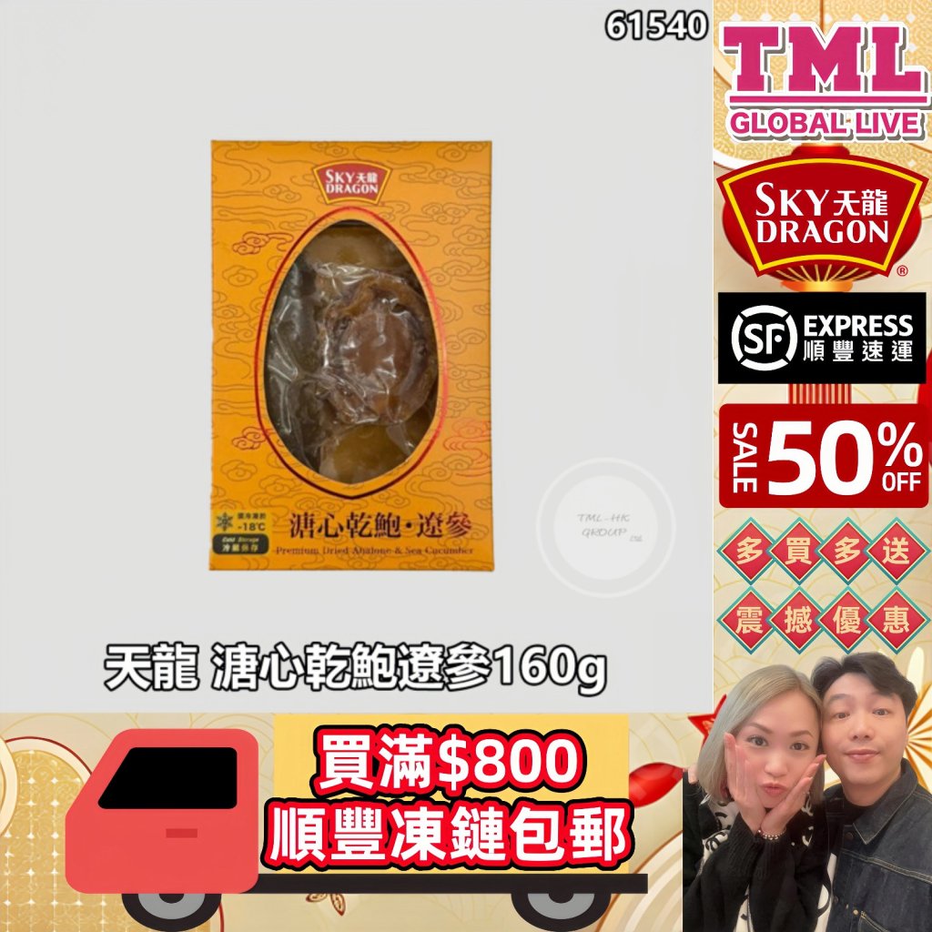 天龍 溏心乾鮑遼參160g【買滿$800包郵順豐凍鏈 | 29/1截單 | 預計2月中到貨 | 20260124A(61540.)】