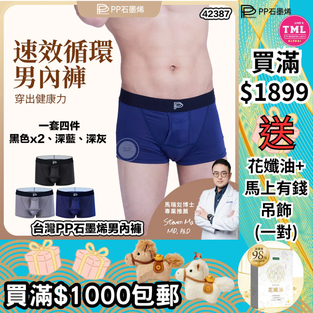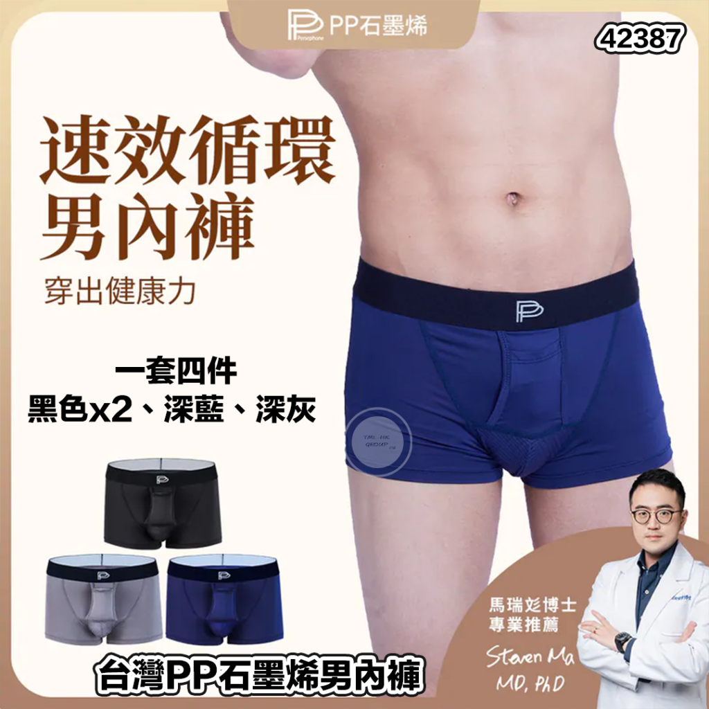 台灣PP石墨烯男內褲 (一套四件,黑x2、深藍、深灰)【PP產品買滿$1000包郵 | 3/1截單 | 預計2月中至尾到貨 | 20251229P(61634.)】