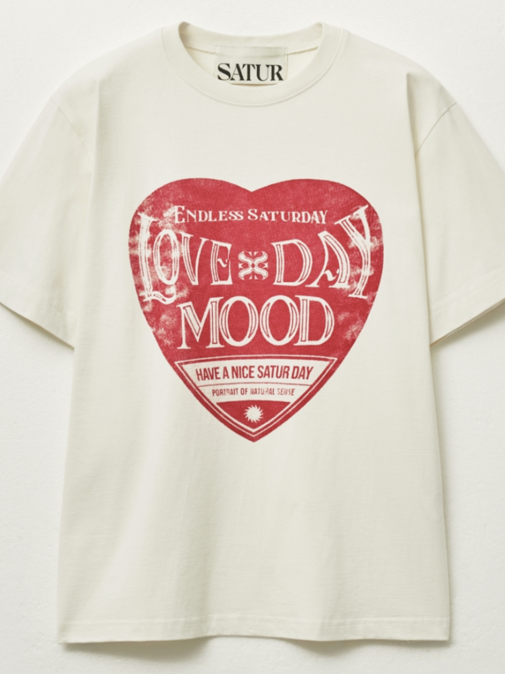 韓國 潮牌SATUR Setterday 復古氛圍心心圖案短袖 T 恤(SA252MTS02)【買滿5件包郵 | 11/2截單 | 預計3月中至尾到貨 | 20260206A(61879.)】