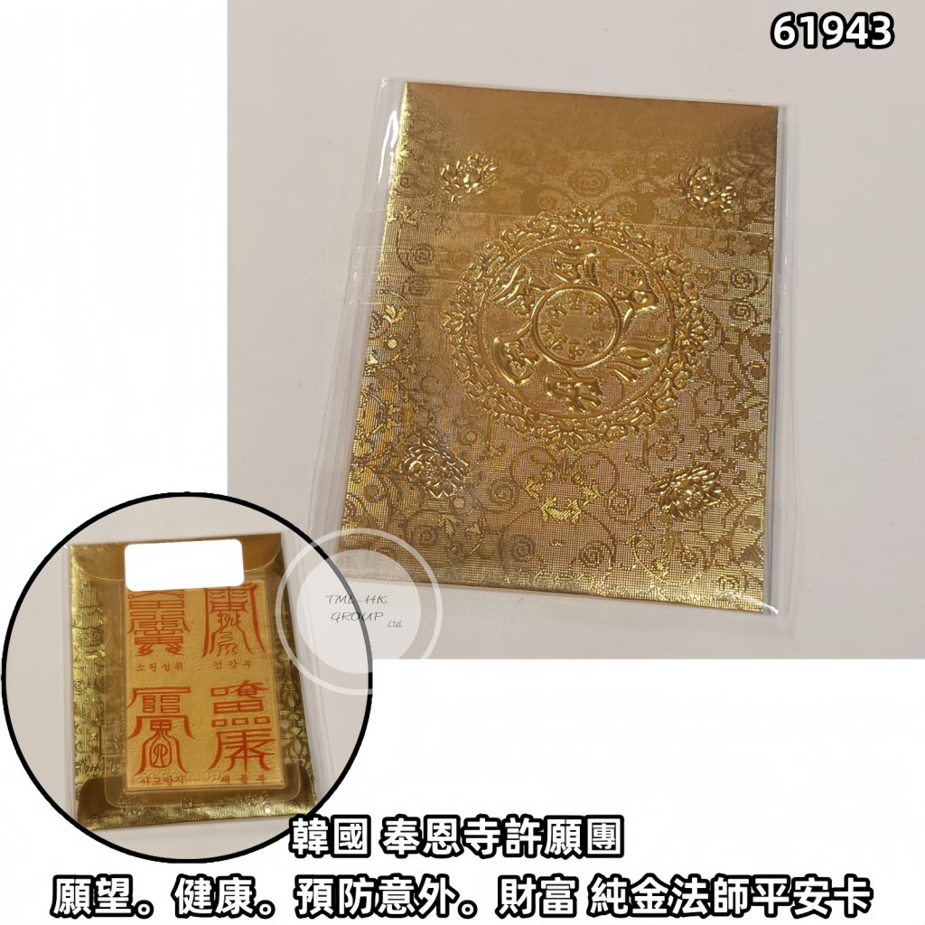 韓國 奉恩寺許願團 願望。健康。預防意外。財富 純金法師平安卡(金色信封)【9/2截單 | 預計3月初至中到貨 | 20260204(61943.)】
