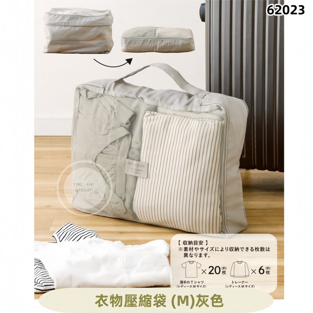 3COINS 衣物壓縮袋 (M)灰色 (2283721647619)【買滿$599包郵 | 4/2截單 | 預計3月初到貨 | 20260130(62023.)】