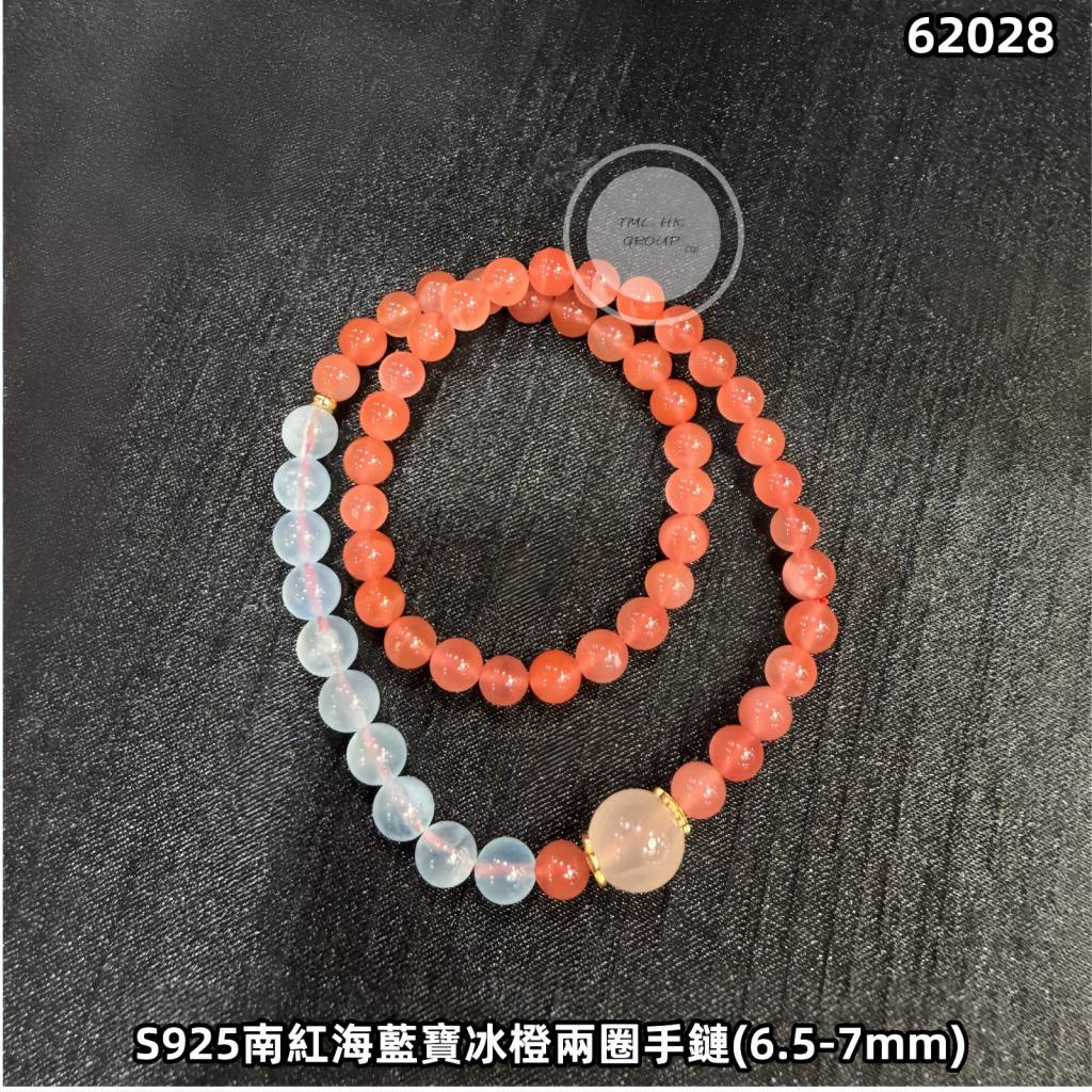 尋寶團 S925南紅海藍寶冰橙兩圈手鏈(6.5-7mm) 【買滿$1000包郵 | 31/1截單 | 預計2月中至尾到貨 | 20260129A(62028.)】