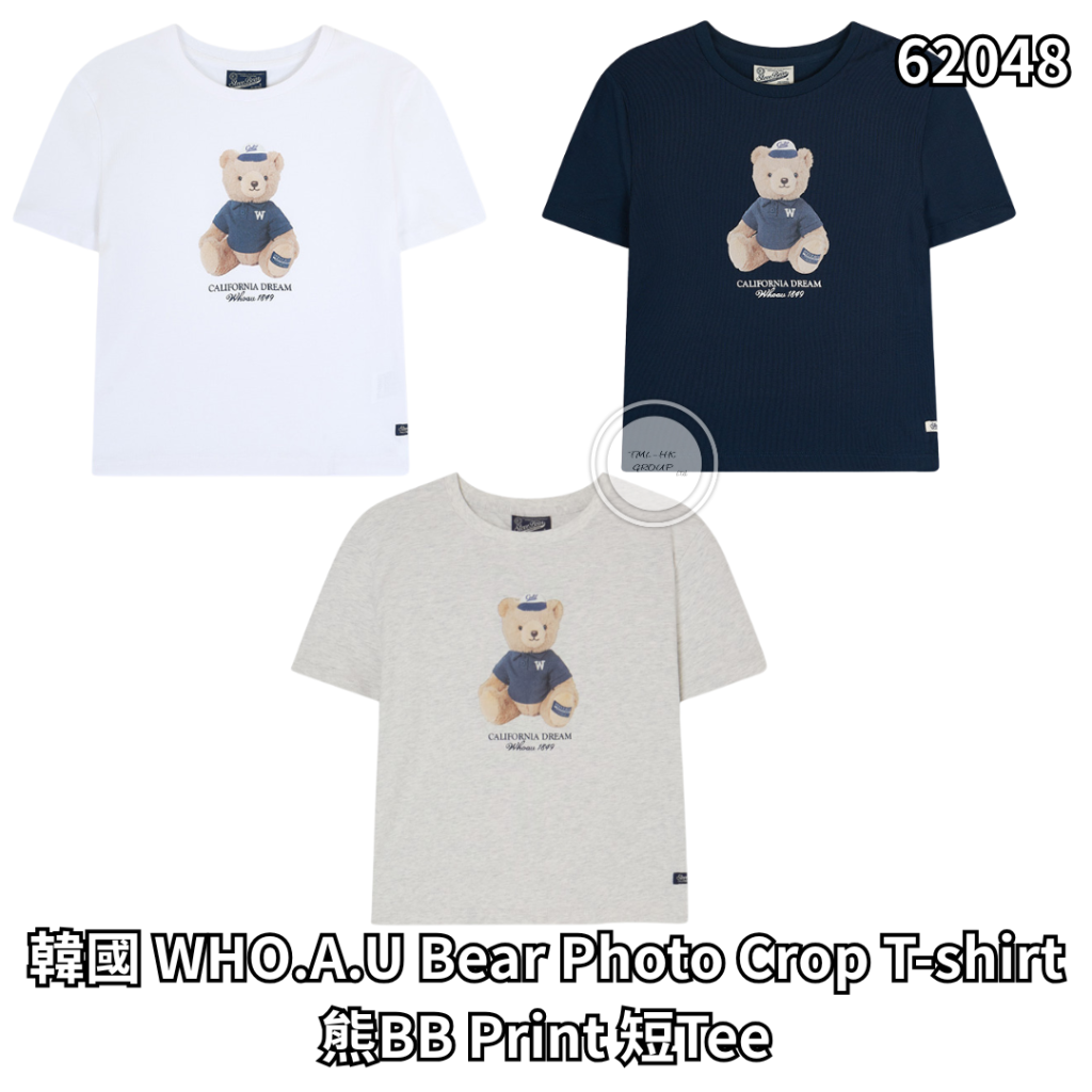 韓國 WHO.A.U Bear Photo Crop T-shirt 熊BB Print 短Tee(WHRPG2451F)【1/4截單 | 預計5月初到貨 | 20260327A(62048.)】
