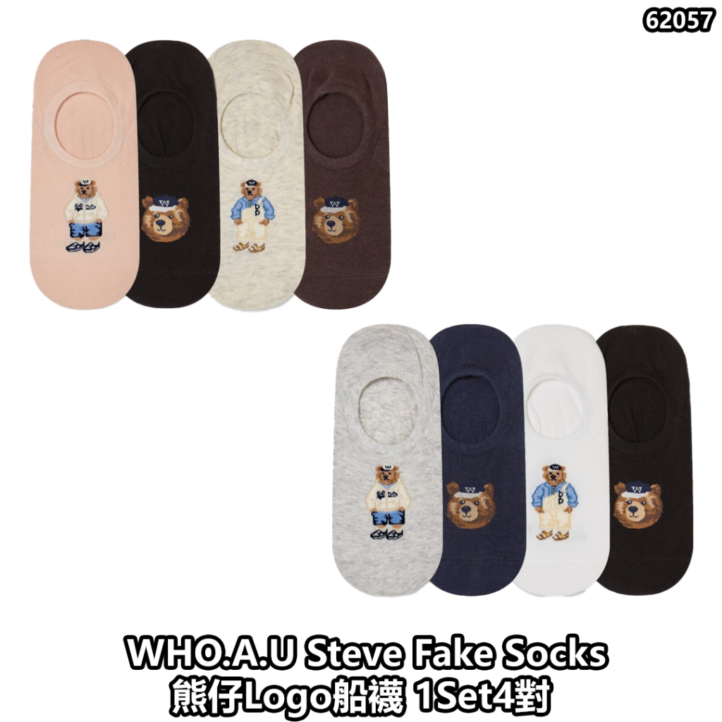 韓國 WHO.A.U Steve Fake Socks 熊仔Logo船襪 1Set4對(WHAYG1113A)【14/2截單 | 預計3月中至尾到貨 | 20260208A(62057.)】