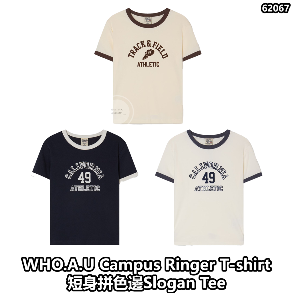 主頁 韓國 WHO.A.U Campus Ringer T-shirt 短身拼色邊Slogan Tee(WHRAG2323F)【14/2截單 | 預計3月中至尾到貨 | 20260208A(62067.)】