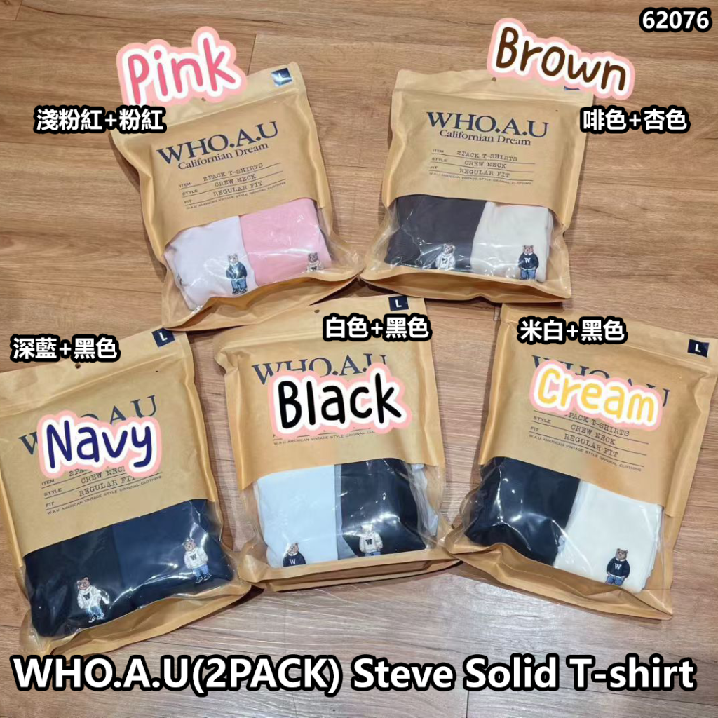 WHO.A.U (2PACK) Steve Solid T-shirt (WHRAG2351U)【14/2截單 | 預計3月中至尾到貨 | 20260208A(62076.)】