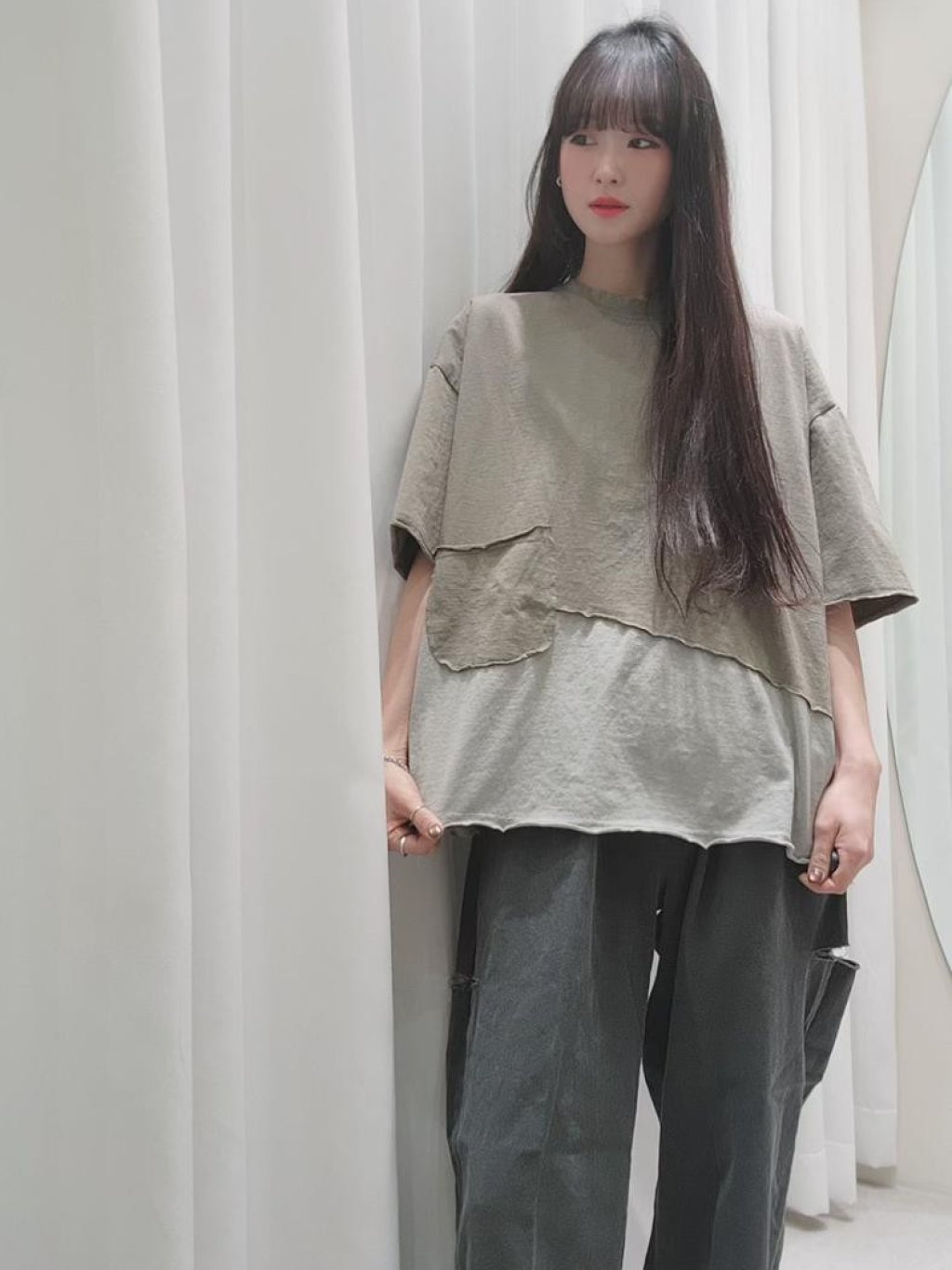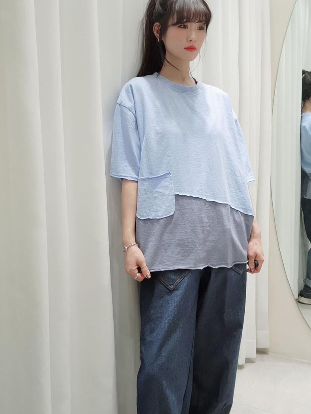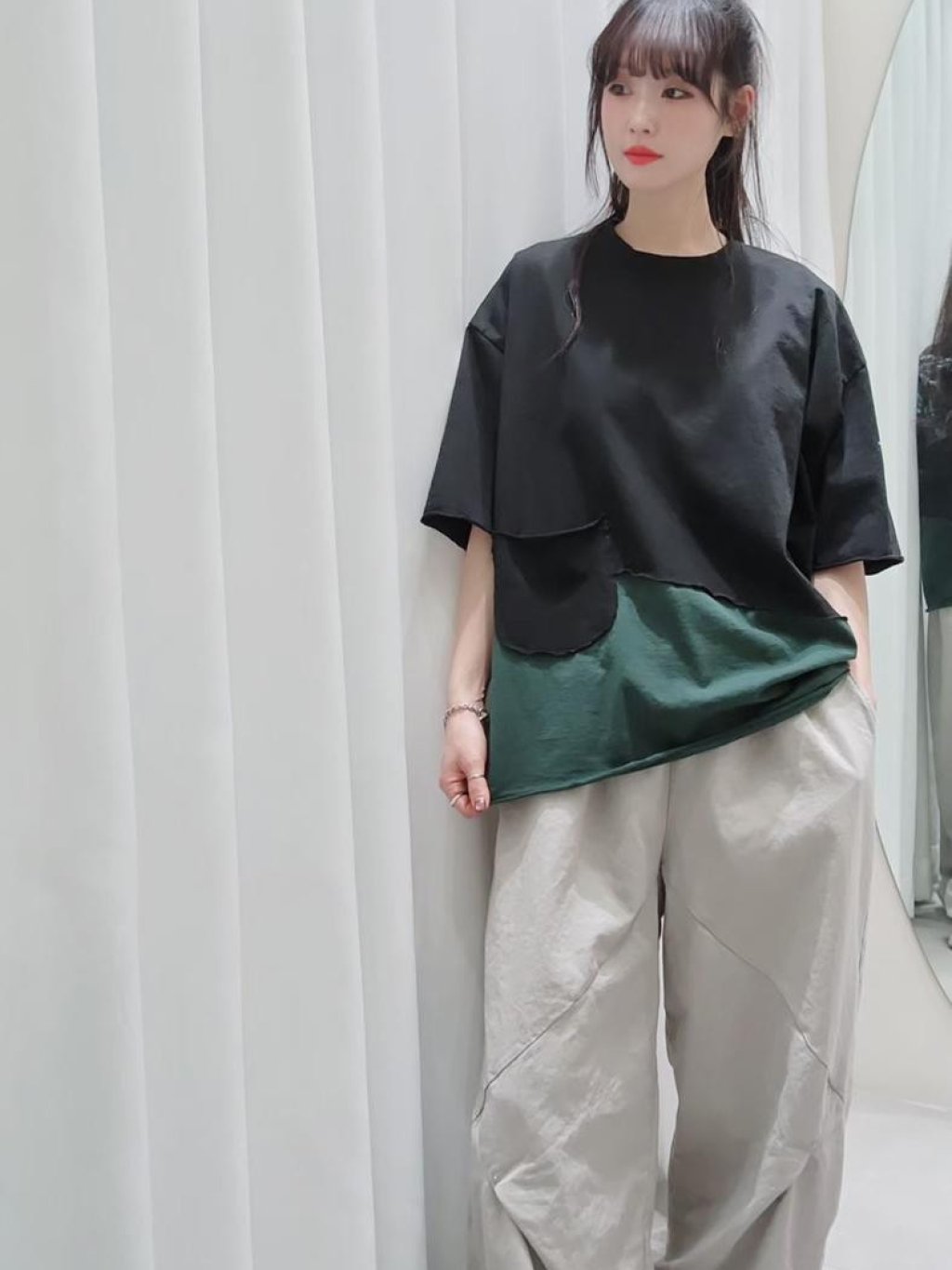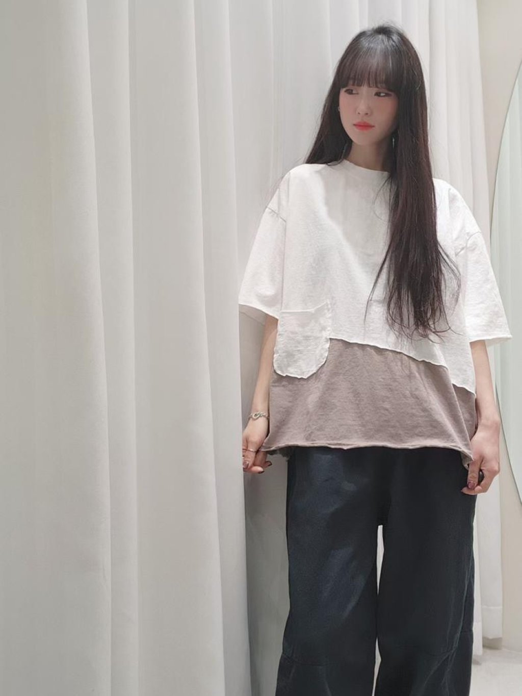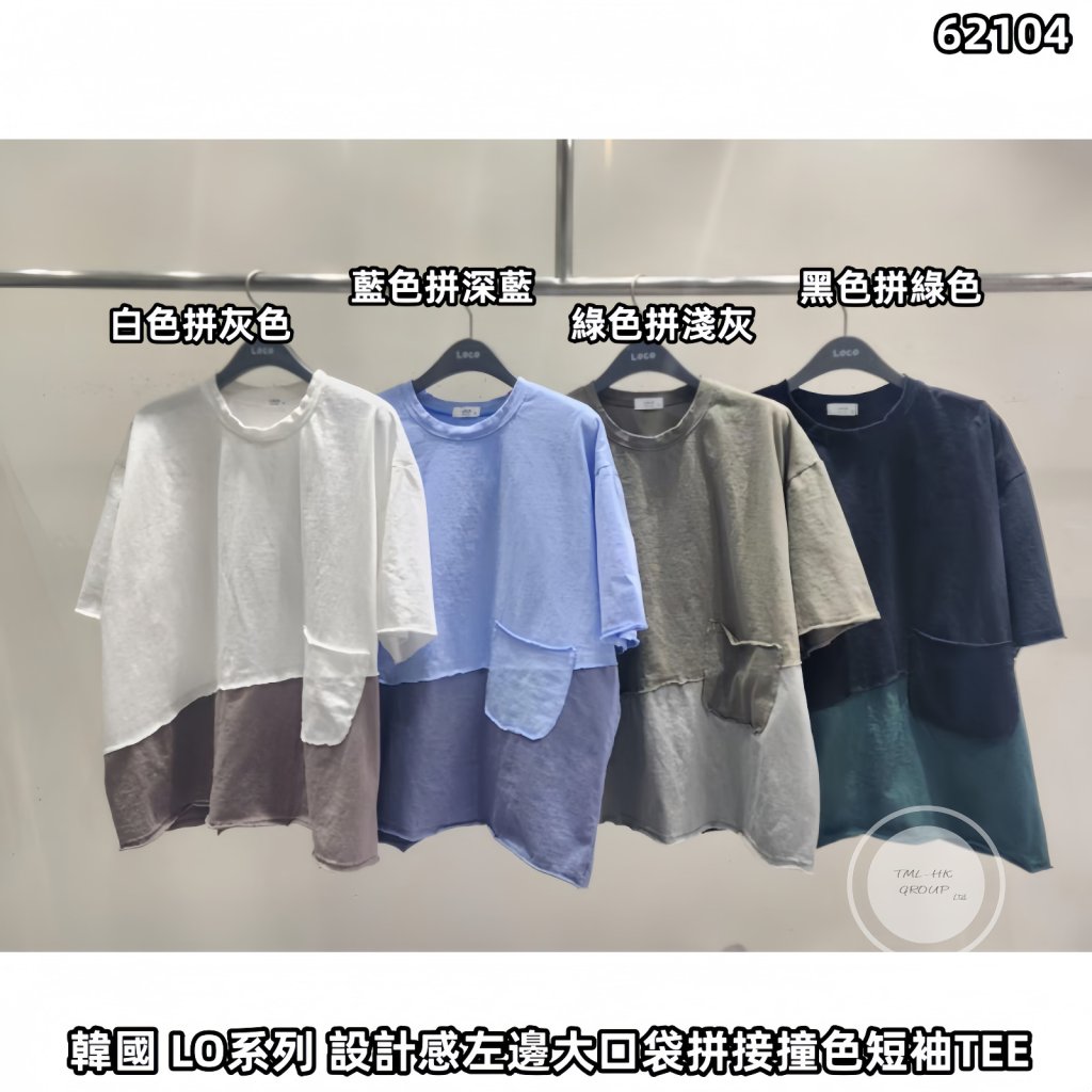 主頁 韓國 LO系列 設計感左邊大口袋拼接撞色短袖TEE【買滿5件包郵 | 14/2截單 | 預計3月中至尾到貨 | 20260209B(62104.)】