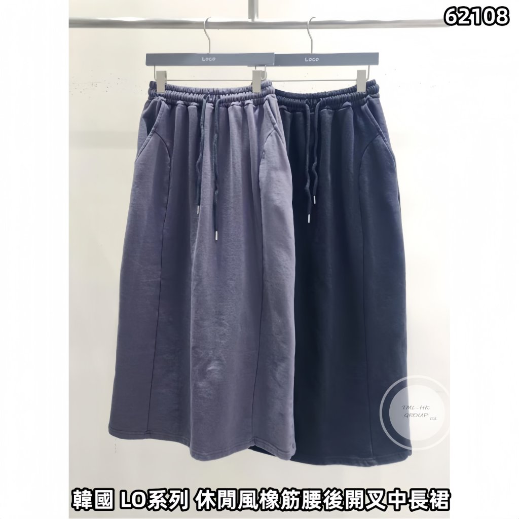 韓國 LO系列 休閒風橡筋腰後開叉中長裙【買滿5件包郵 | 14/2截單 | 預計3月中至尾到貨 | 20260209B(62108.)】