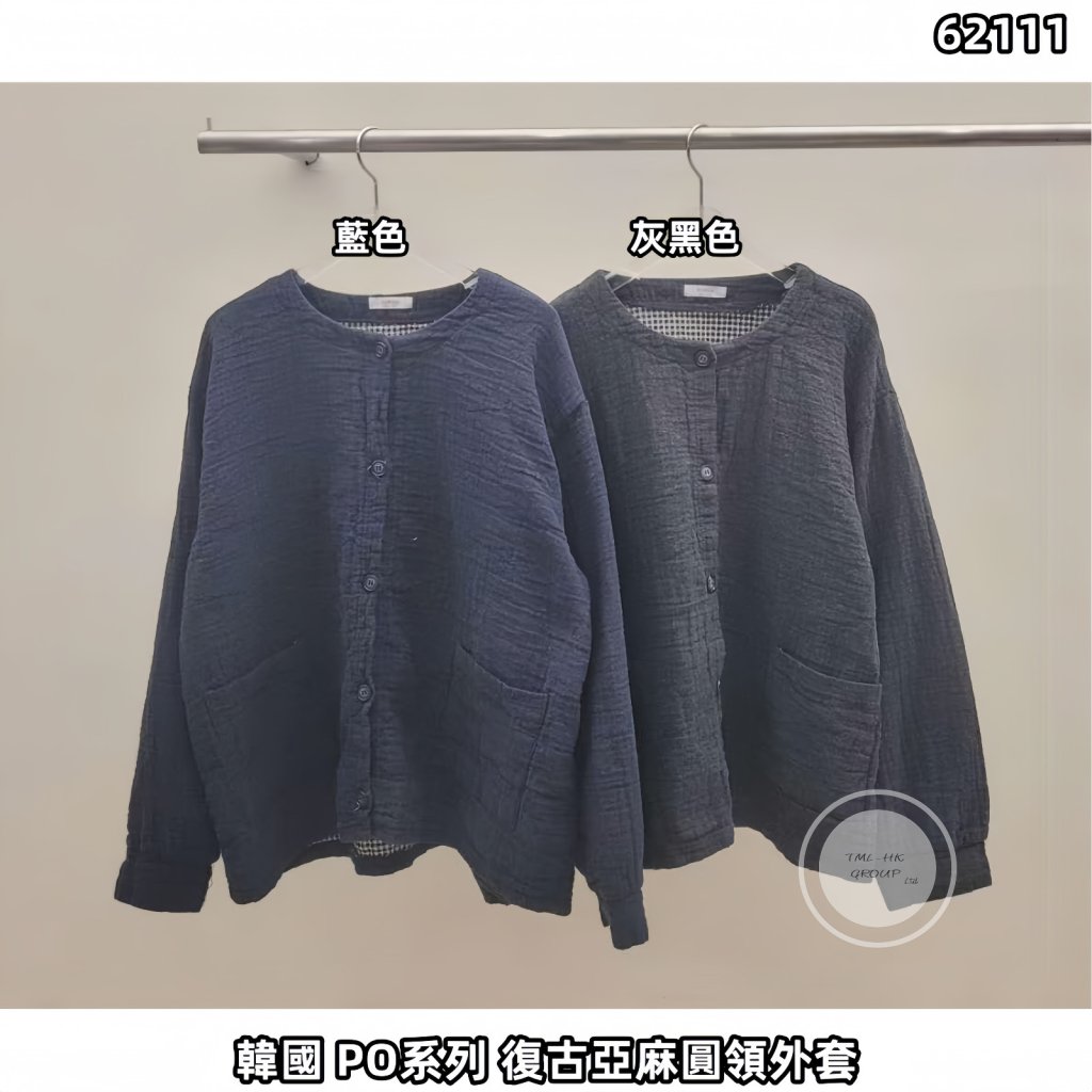 韓國 PO系列 復古亞麻圓領外套【買滿5件包郵 | 14/2截單 | 預計3月中至尾到貨 | 20260209B(62111.)】