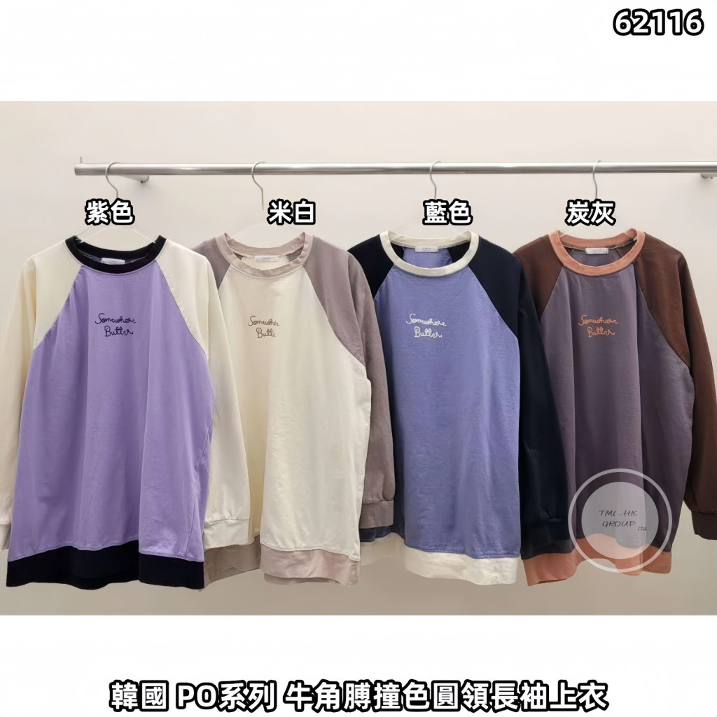 主頁 韓國 PO系列 牛角膊撞色圓領長袖上衣【買滿5件包郵 | 14/2截單 | 預計3月中至尾到貨 | 20260209B(62116.)】