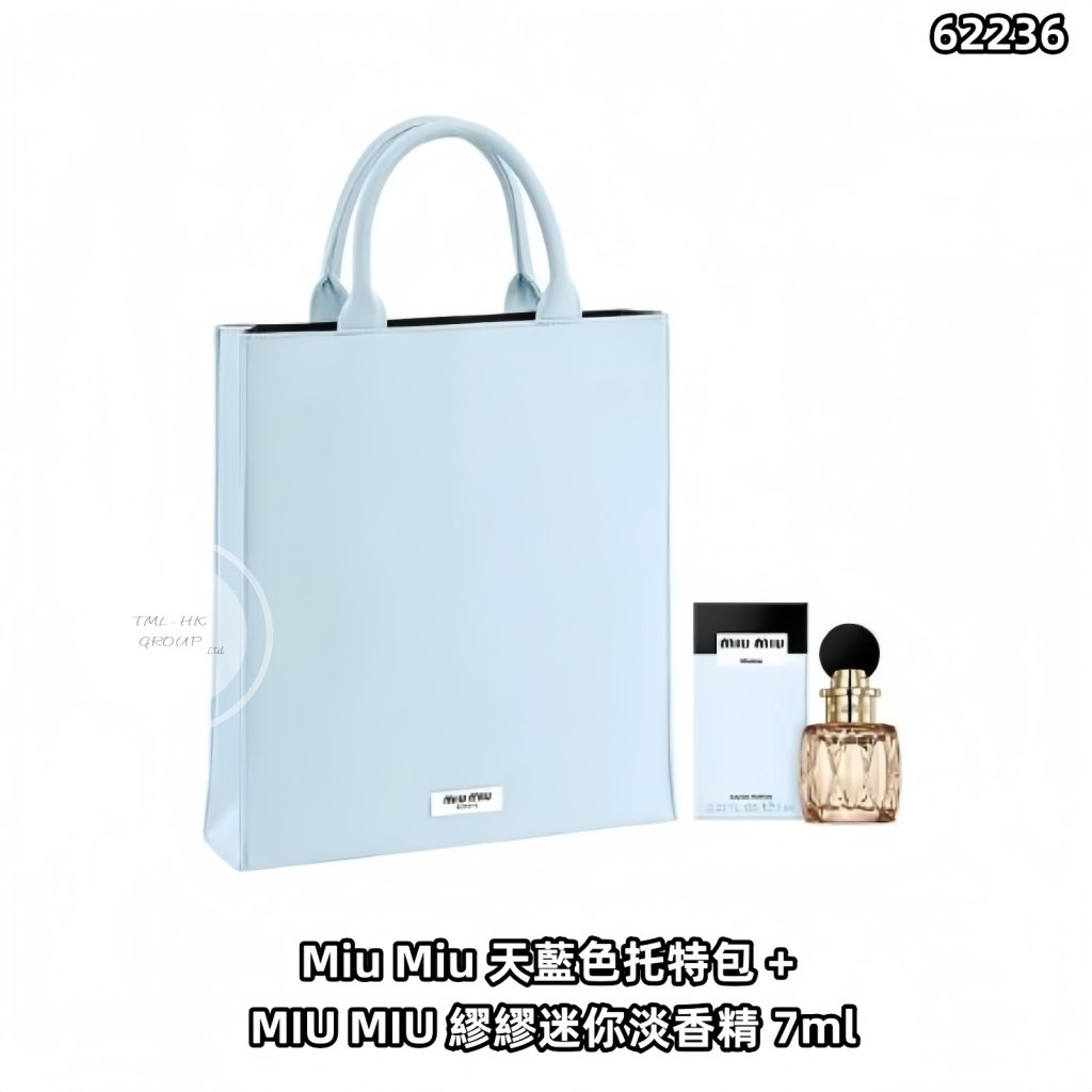 歐美開倉 Miu Miu 天藍色托特包 + MIU MIU 繆繆迷你淡香精 7ml【買滿$1000包郵 | 12/2截單 | 預計3月中至尾到貨 | 20260210A(62236.)】
