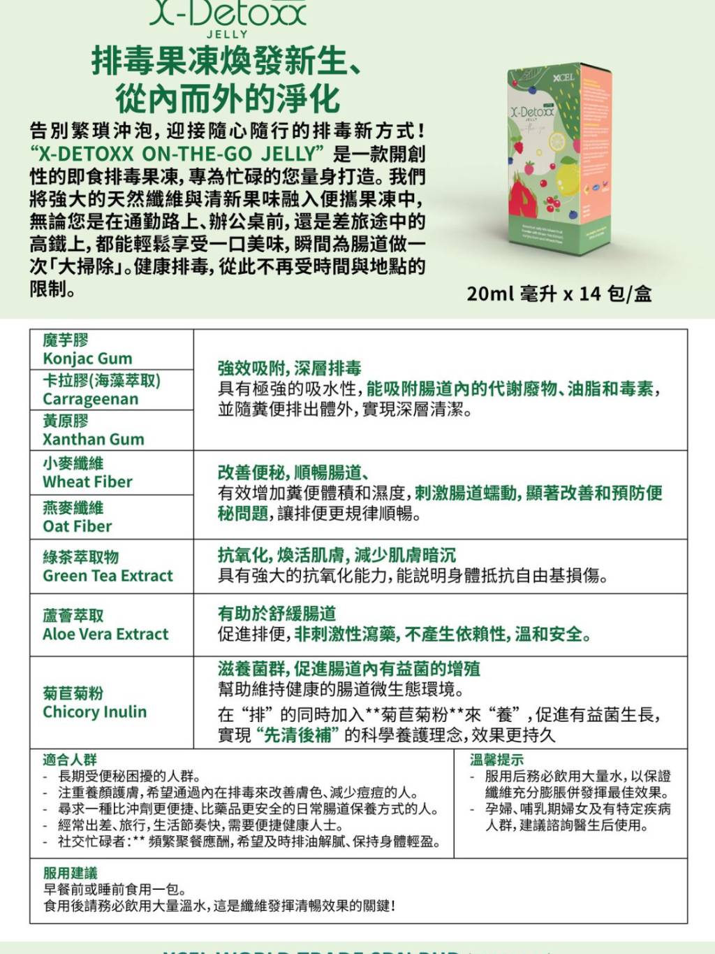 馬來西亞保健品 X-Detoxx Jelly 排毒啫理(一盒14包)【本場買滿$899包郵 | 8/3截單 | 預計4月初至中到貨 | 20260303(63068.)】