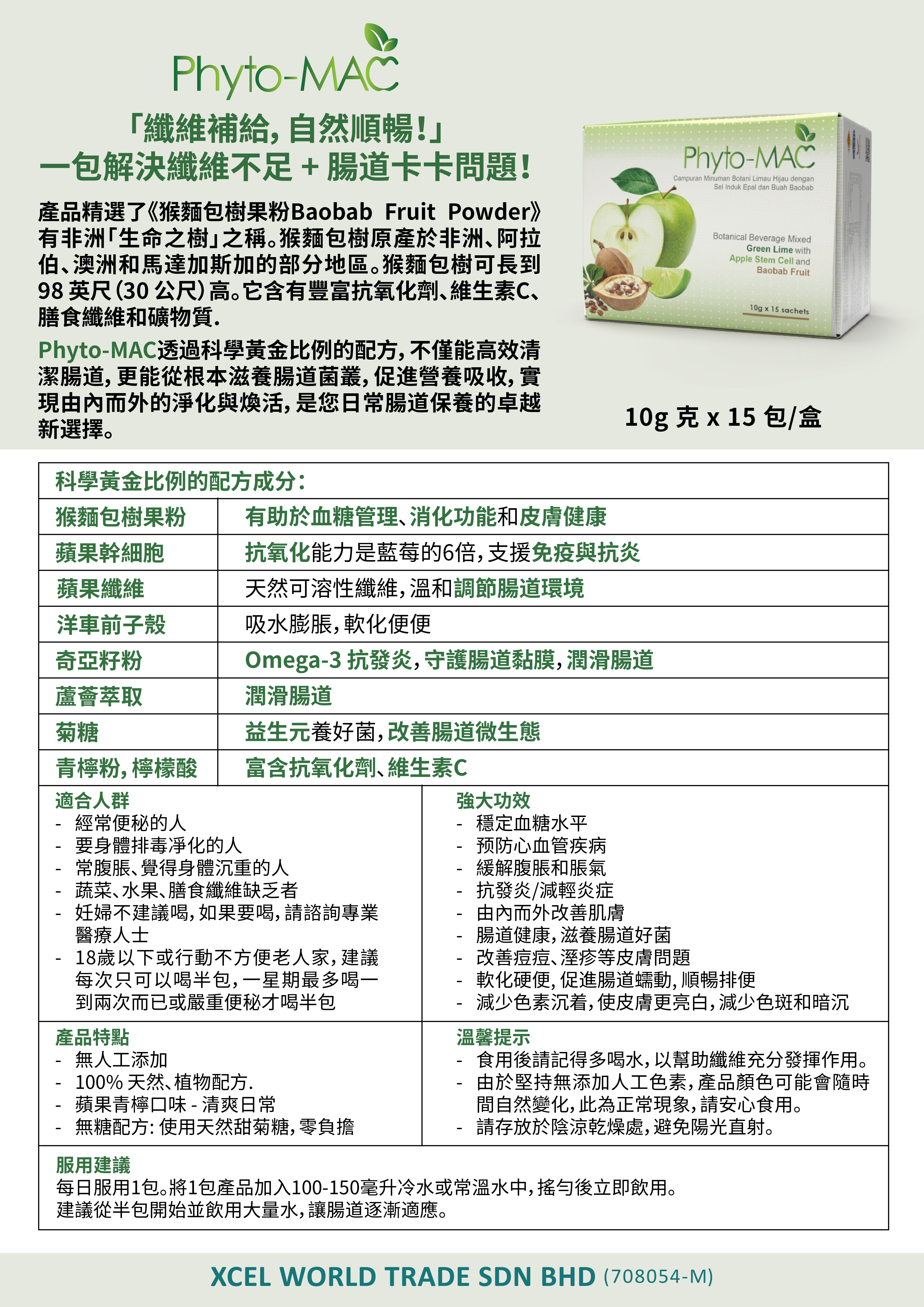 馬來西亞保健品 Phytomac 猴麵包樹+蘋果干細胞(一盒15包)【本場買滿$899包郵 | 8/3截單 | 預計4月初至中到貨 | 20260303(63069.)】
