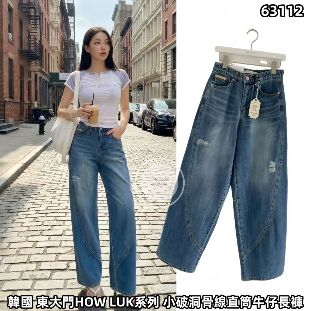 韓國 東大門HOW LUK系列 小破洞骨線直筒牛仔長褲(6038)【5件包郵 | 13/3截單 | 預計4月中至尾到貨 | 20260308B(63112.)】