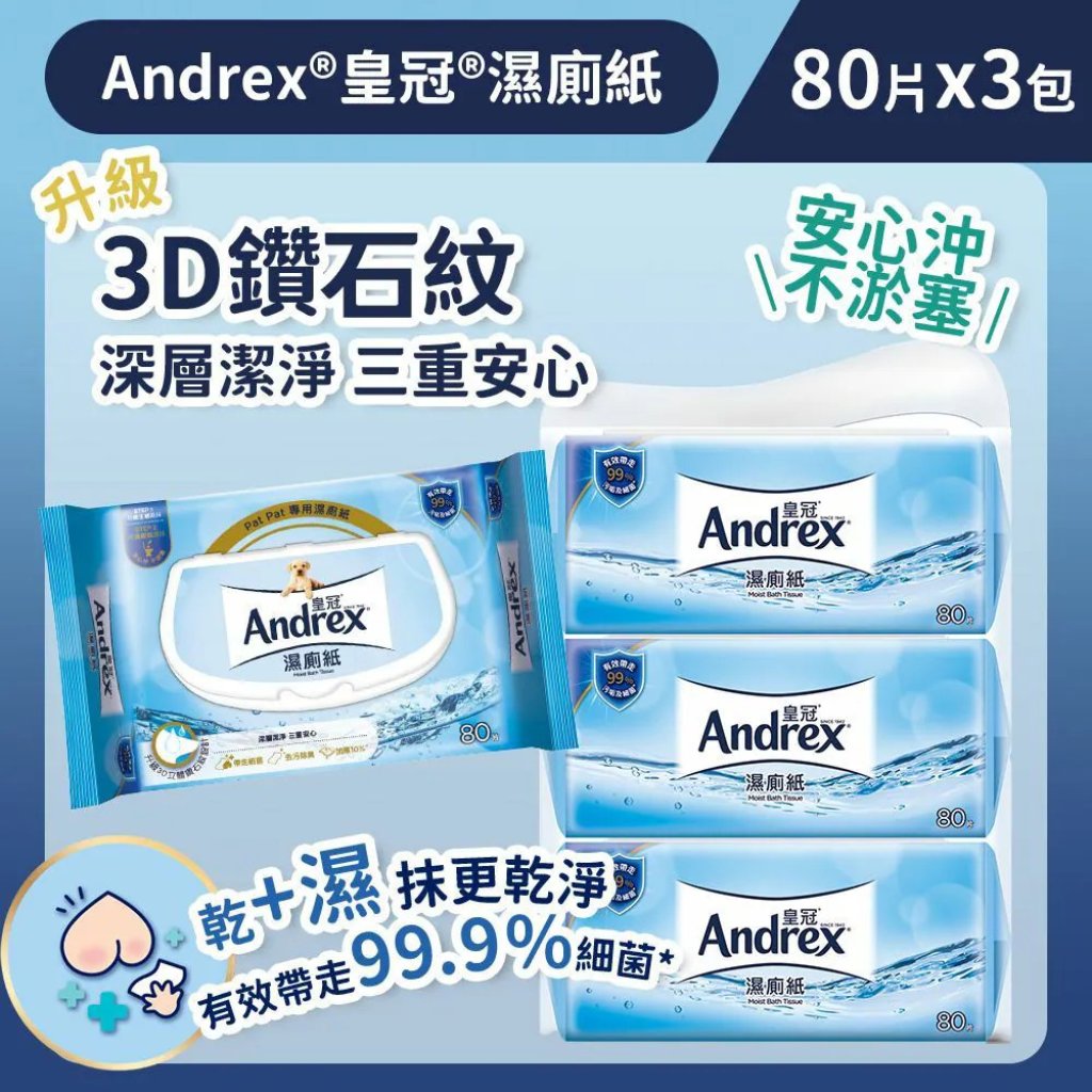 生活用品專場 Andrex 濕廁紙(80片X3包)(14016319/14016702)【買滿$699包郵樂記 | 19/3截單 | 預計4月中至尾到貨 | 20260314(63433.)】