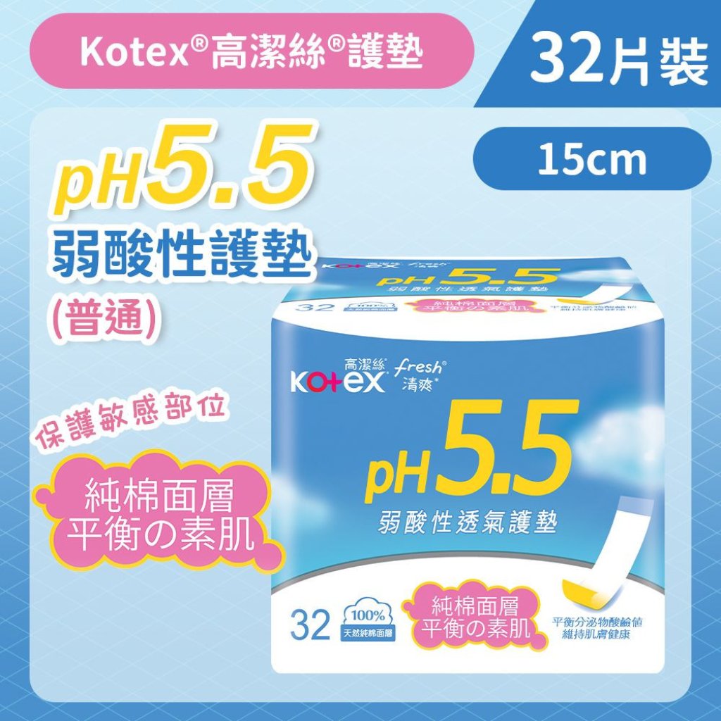 生活用品專場 Kotex PH5.5日本純棉健康弱酸性護墊(15cmX32片)(1SET 5件)(14016535)【買滿$699包郵樂記 | 19/3截單 | 預計4月中至尾到貨 | 20260314(63475.)】