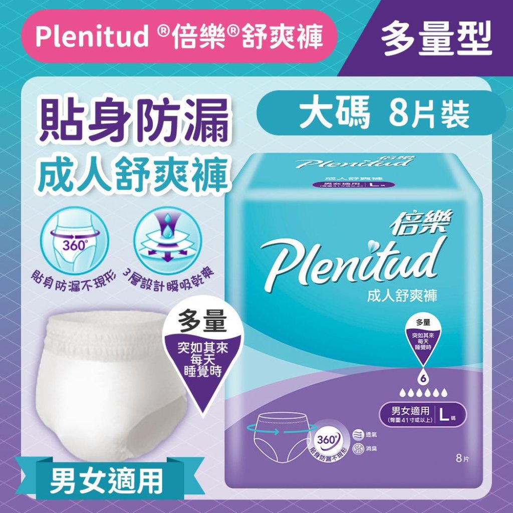 生活用品專場 Plenitud 成人男女尿滲舒爽褲大碼(大碼X8片 中至多量尿滲男女適用)(14013824)【買滿$699包郵樂記 | 19/3截單 | 預計4月中至尾到貨 | 20260314(63488.)】