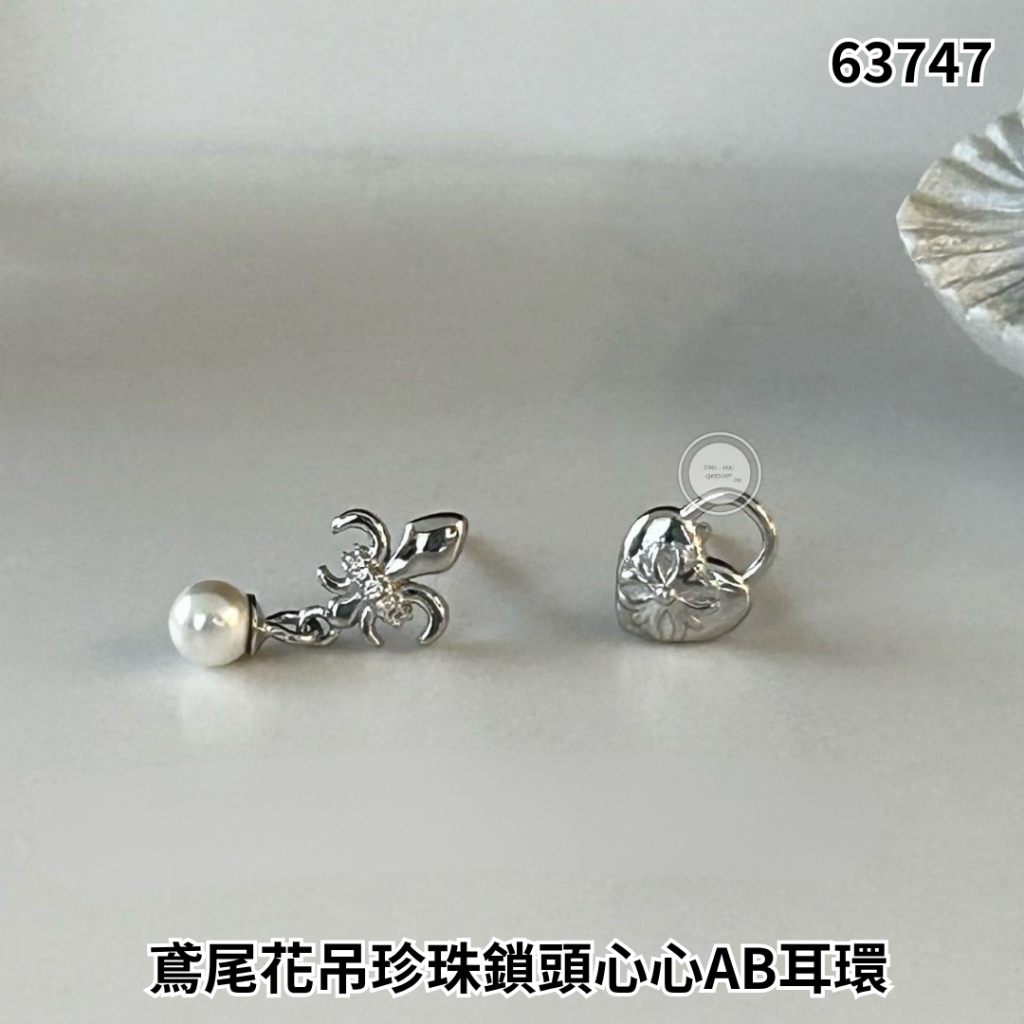 韓國MM925純銀 鳶尾花吊珍珠鎖頭心心AB耳環【買滿5件包郵 | 29/3截單 | 預計5月初到貨 | 20260324B(63747.)】