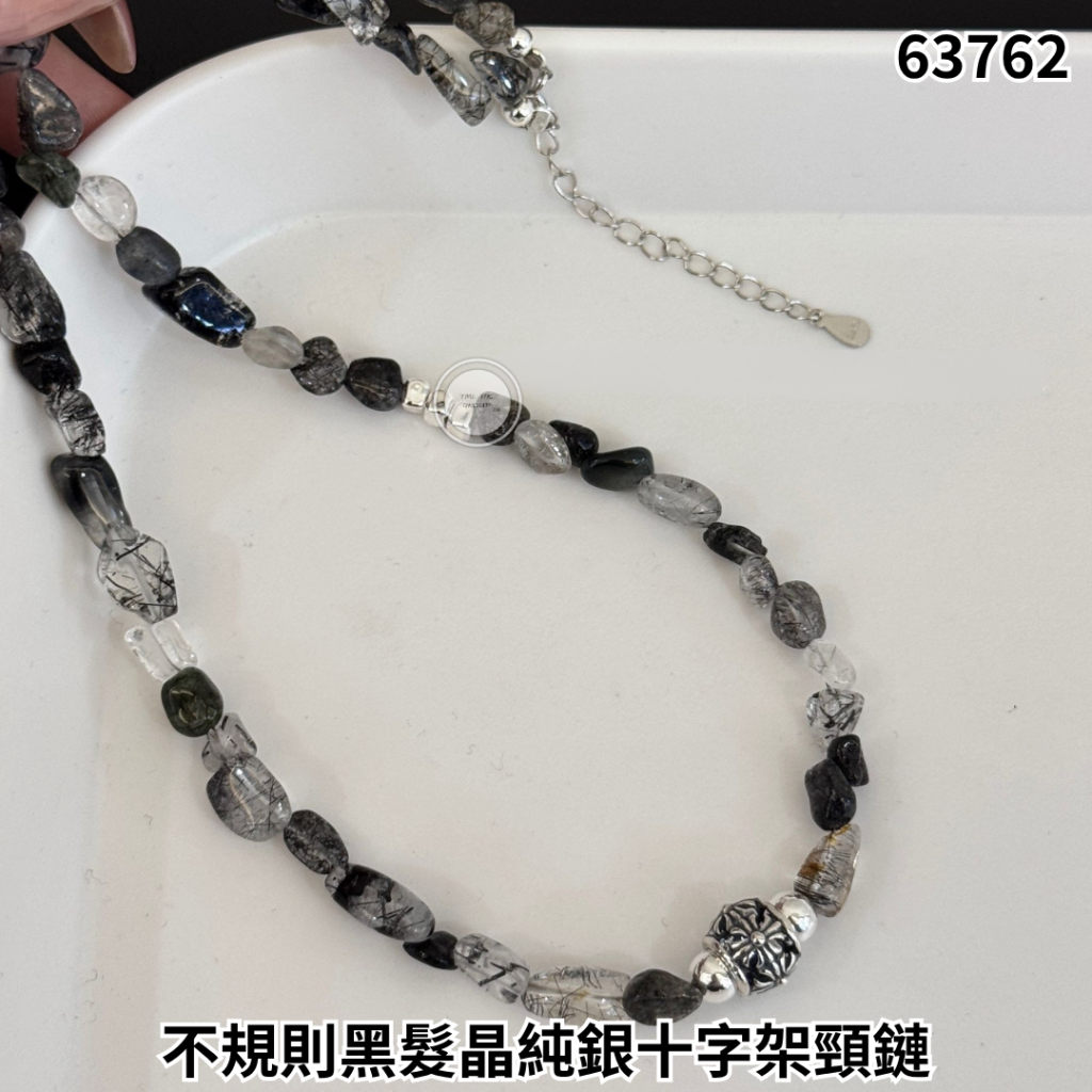 韓國MM925純銀 不規則黑髮晶純銀十字架頸鏈【買滿5件包郵 | 29/3截單 | 預計5月初到貨 | 20260324B(63762.)】