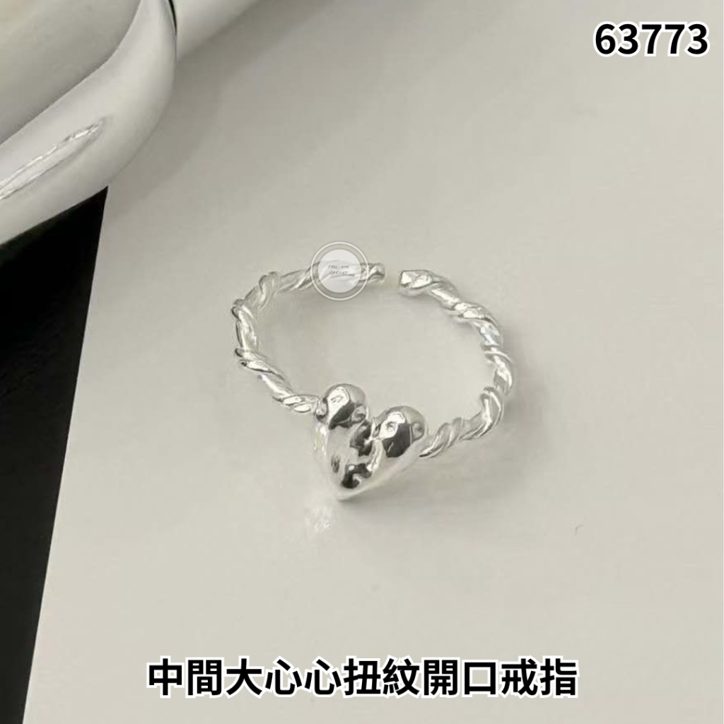 韓國MM925純銀 中間大心心扭紋開口戒指【29/3截單 | 預計5月初到貨 | 20260324B(63773.)】