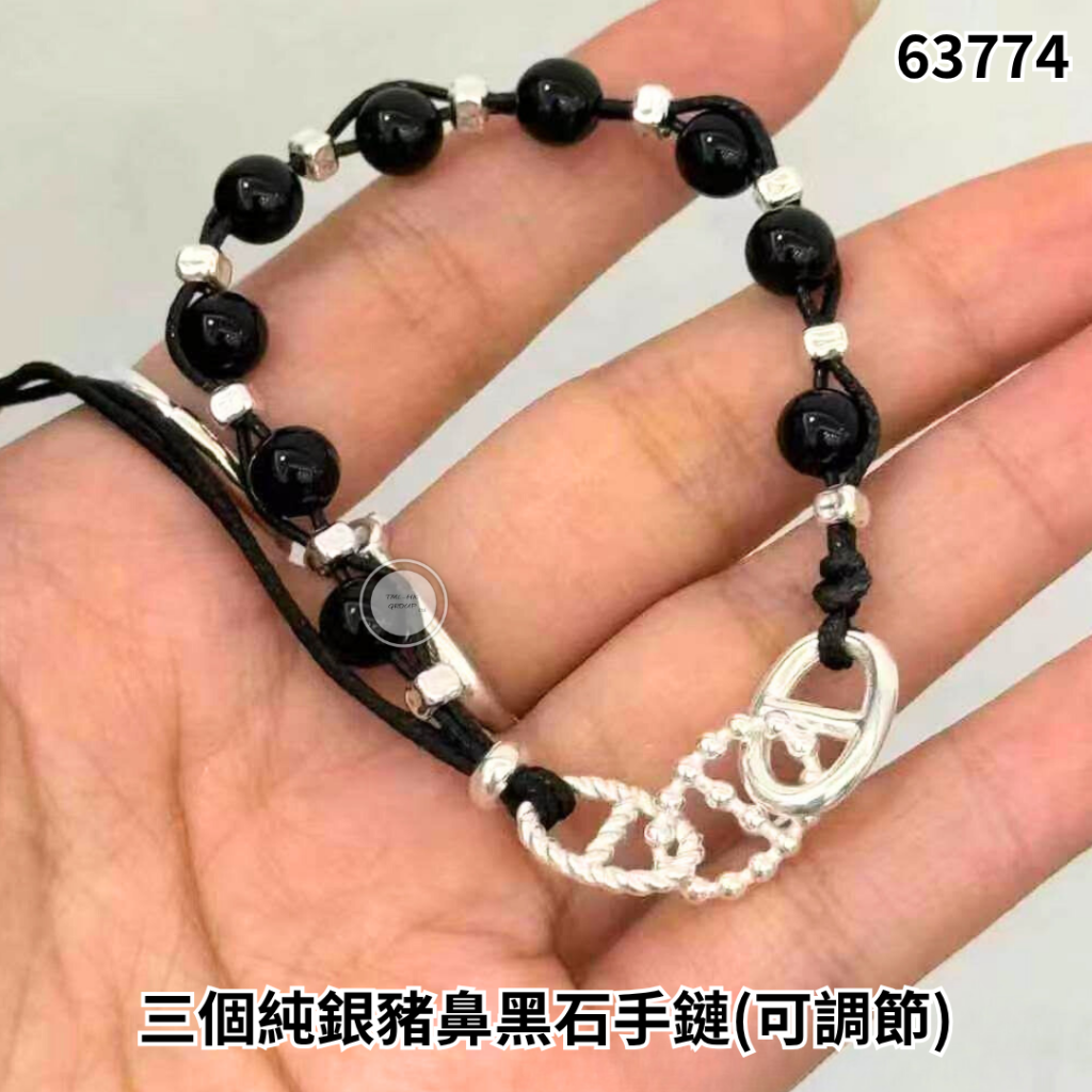 韓國MM925純銀 三個純銀豬鼻黑石手鏈(可調節)【買滿5件包郵 | 29/3截單 | 預計5月初到貨 | 20260324B(63774.)】