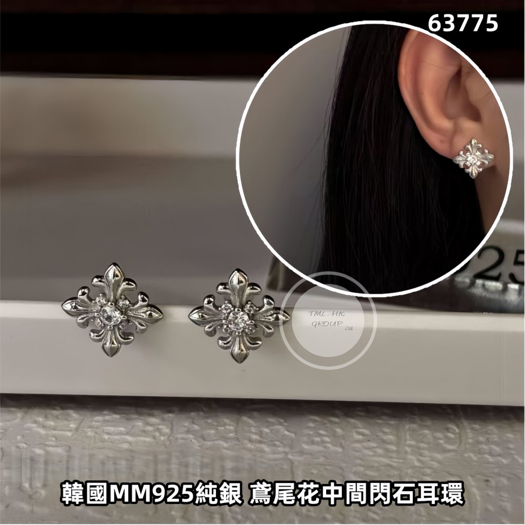 韓國MM925純銀 鳶尾花中間閃石耳環【買滿5件包郵 | 29/3截單 | 預計5月初到貨 | 20260324B(63775.)】