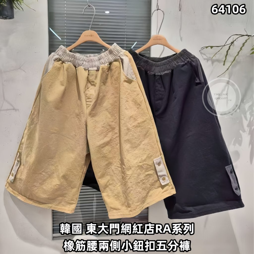 韓國 東大門網紅店RA系列 橡筋腰兩側小鈕扣五分褲【買滿5件包郵 | 7/4截單 | 預計5月初至中到貨 | 20260402B(64106.)】