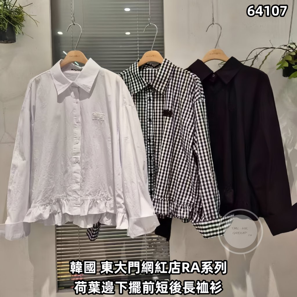 韓國 東大門網紅店RA系列 荷葉邊下擺前短後長裇衫【買滿5件包郵 | 7/4截單 | 預計5月初至中到貨 | 20260402B(64107.)】