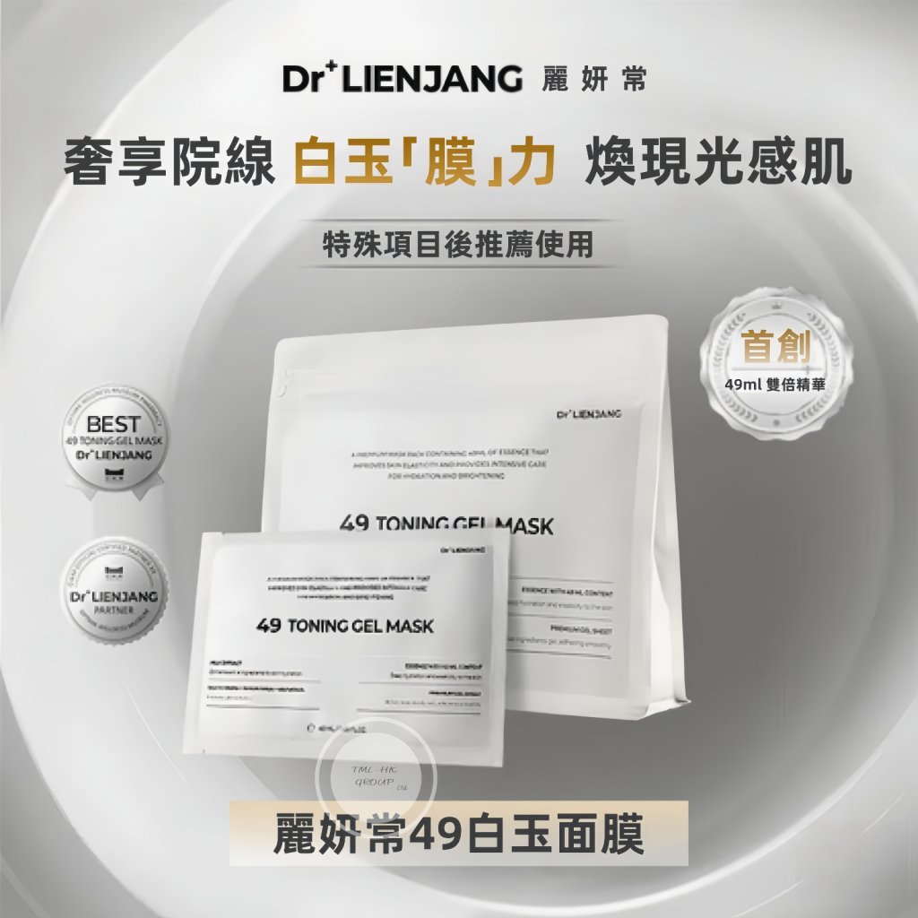 主頁 韓國 江南一線醫美品牌麗妍常LIENJANG 49 TONING GEL MASK 49白玉面膜 49ml x 5片【$1000包郵 | 9/4截單 | 預計5月中到貨 | 20260404A(64174.)】