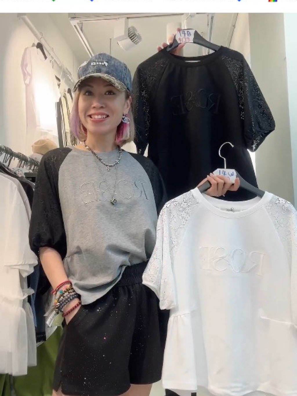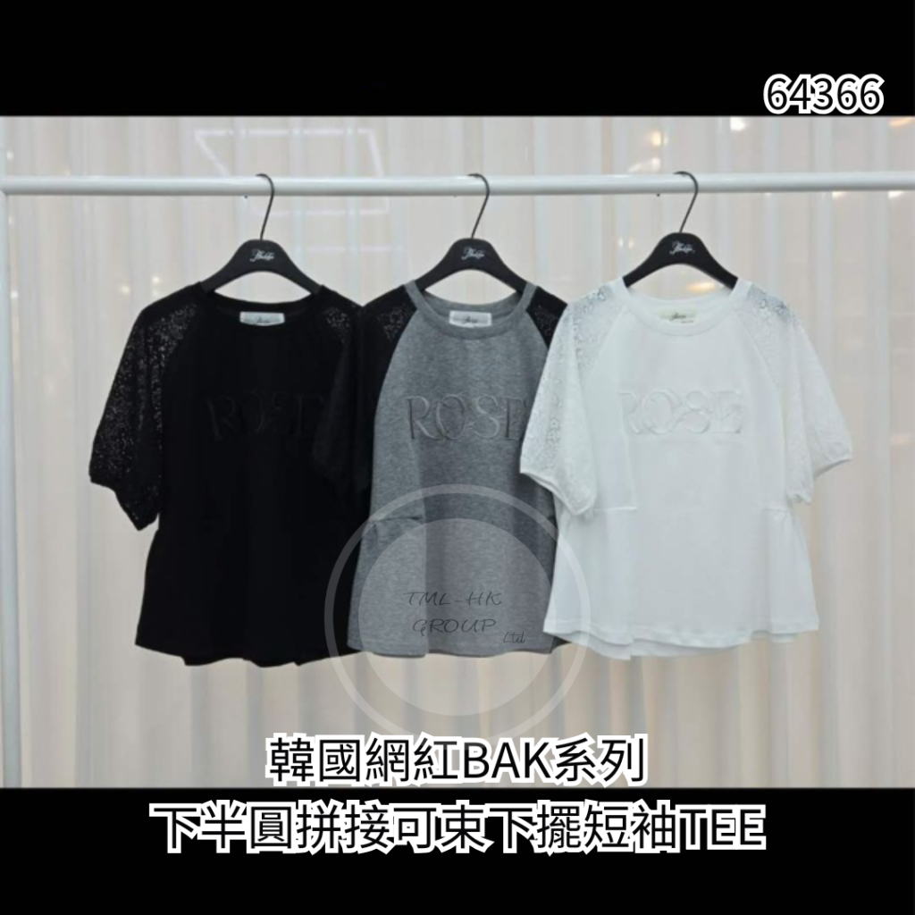 韓國網紅BAK系列 手袖拼接蕾絲中間刺綉ROSE字短袖TEE【買滿5件包郵 | 11/4截單 | 預計5月中至尾到貨 | 20260406A(64367.)】