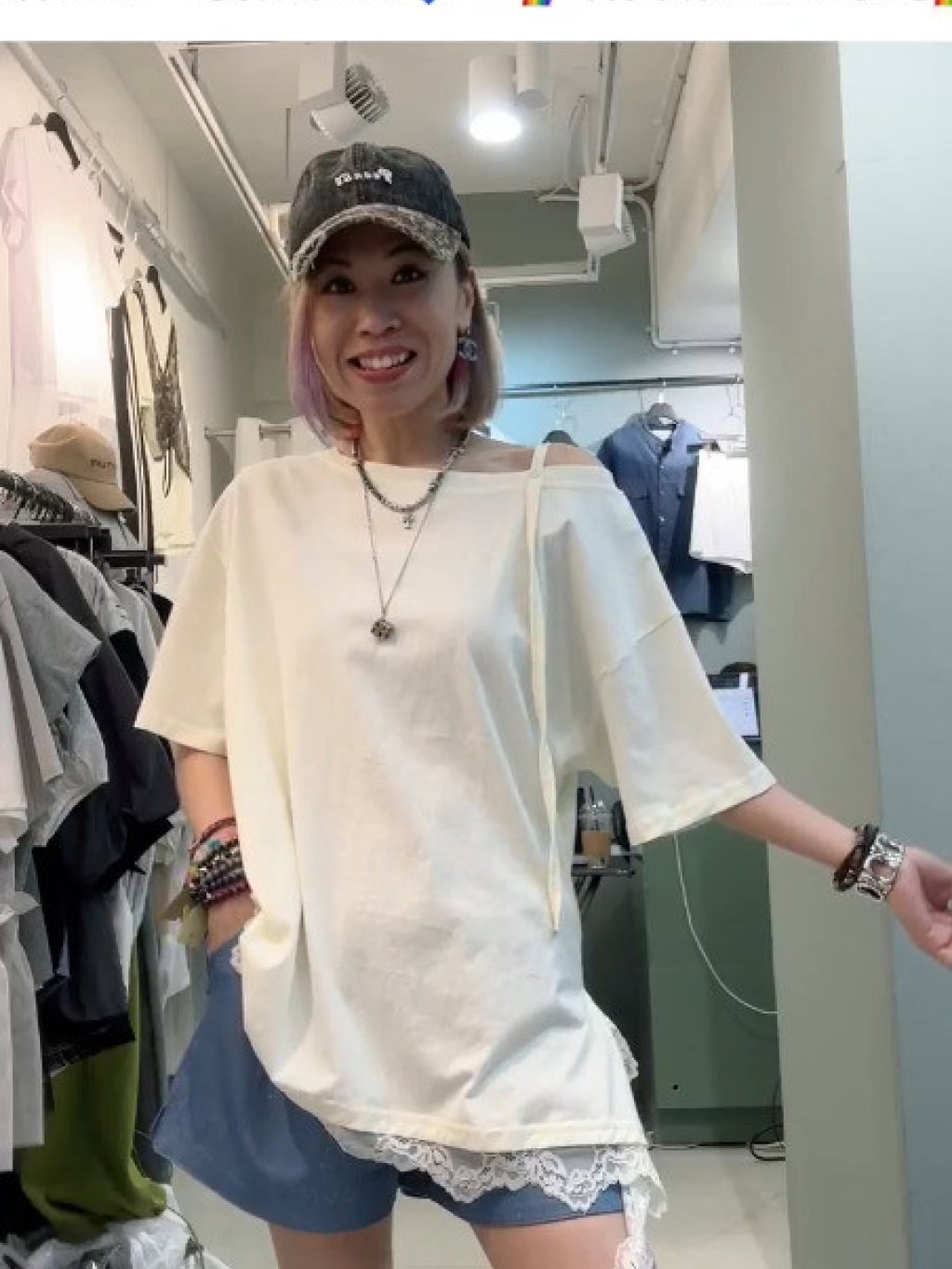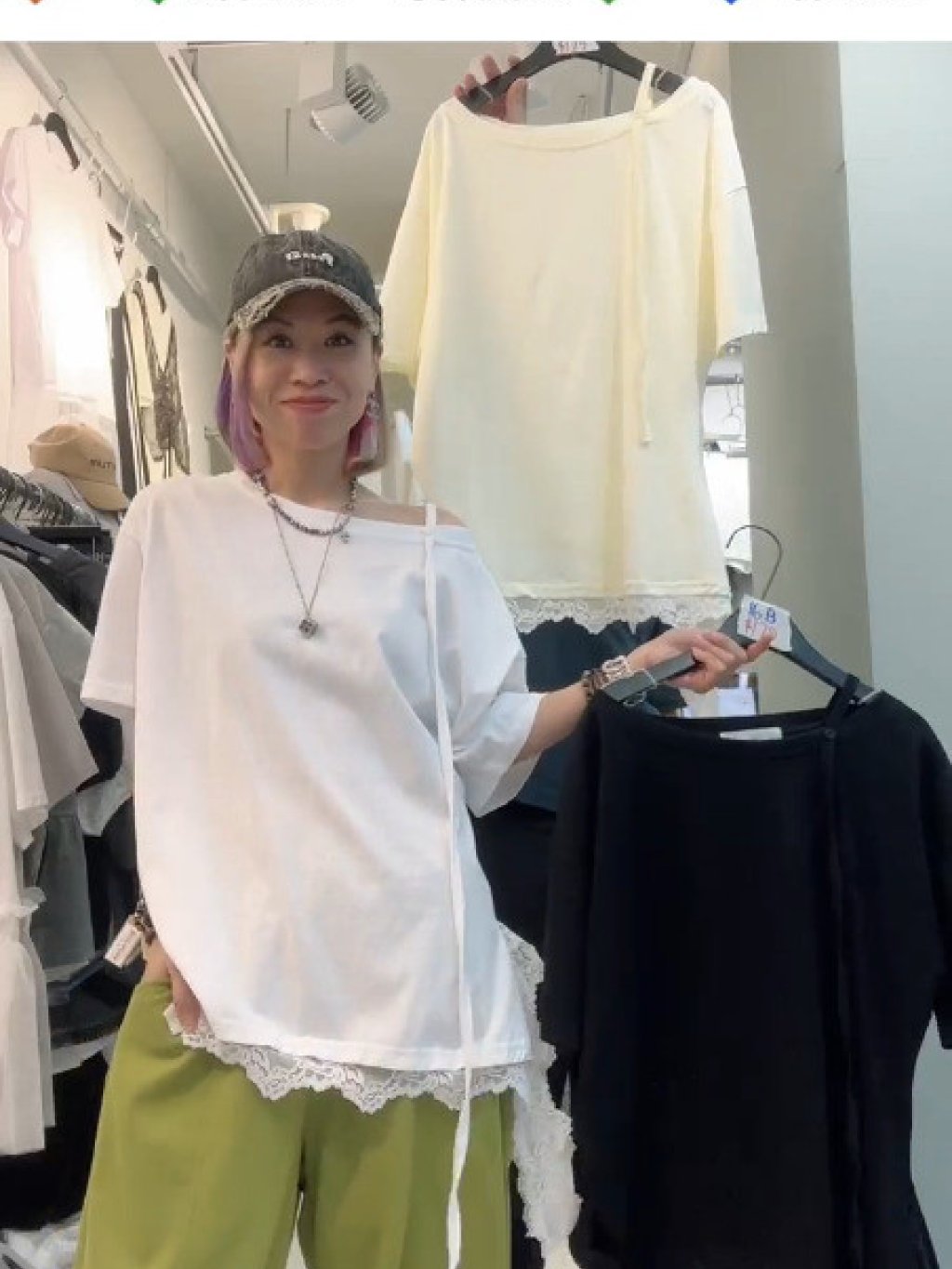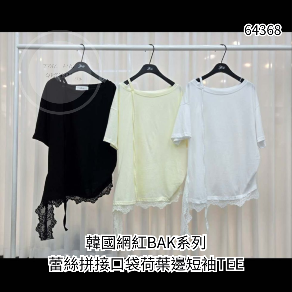 韓國網紅BAK系列 不規則下擺拼接蕾絲短袖TEE【買滿5件包郵 | 11/4截單 | 預計5月中至尾到貨 | 20260406A(64369.)】