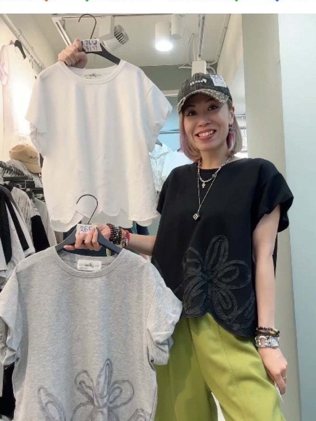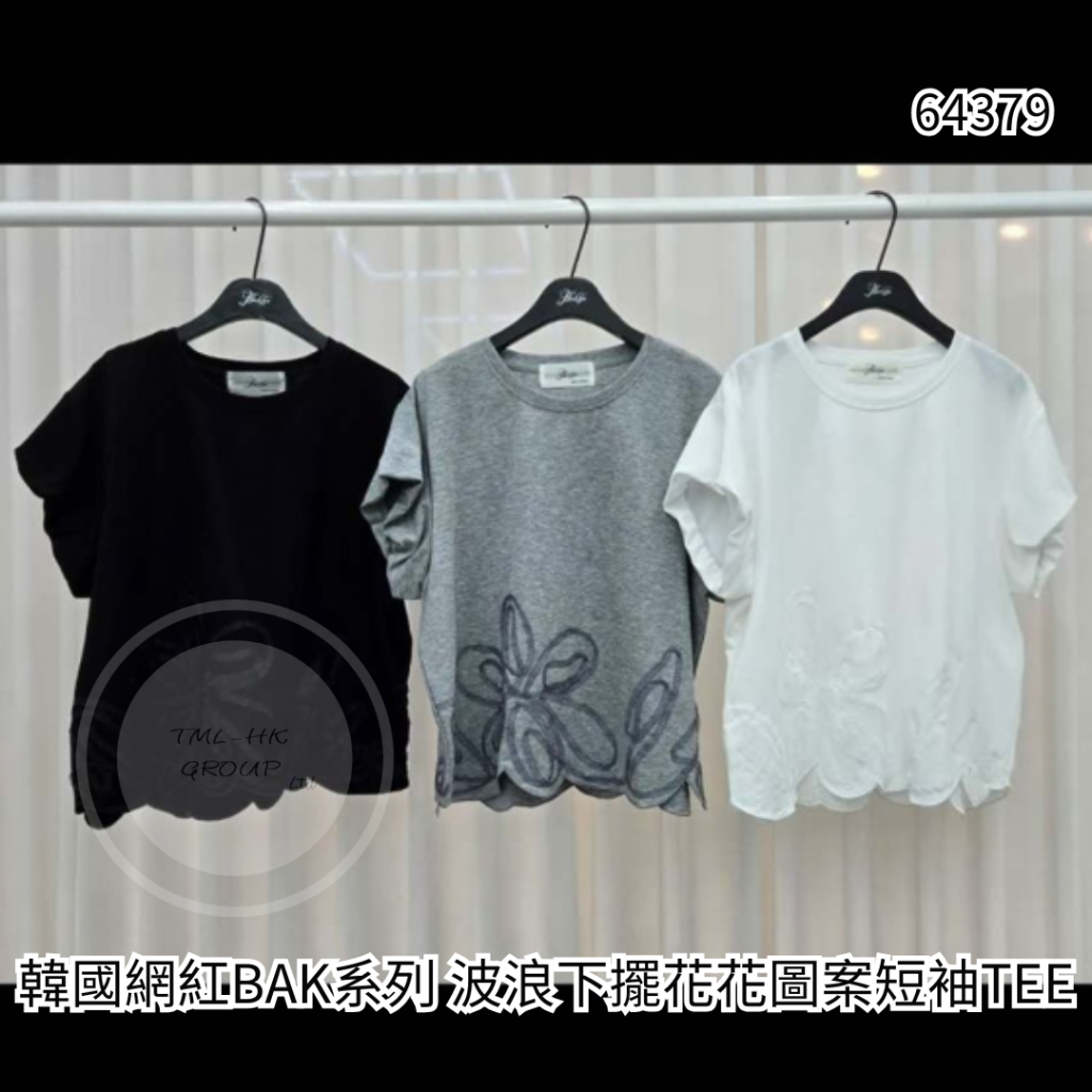 韓國網紅BAK系列 波浪下擺花花圖案短袖TEE【買滿5件包郵 | 11/4截單 | 預計5月中至尾到貨 | 20260406A(64379.)】