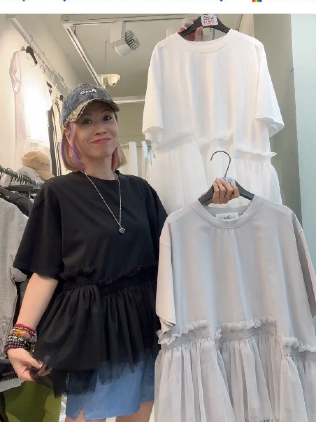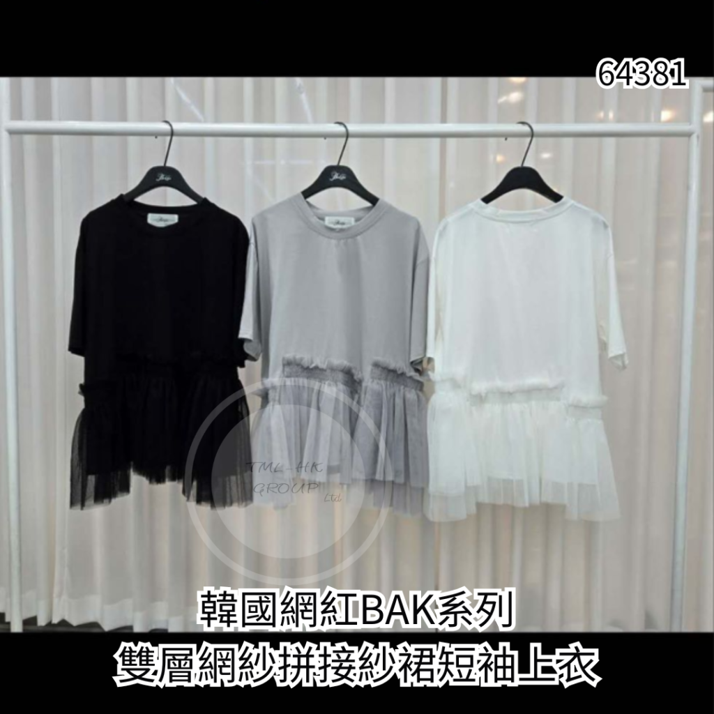 韓國網紅BAK系列 雙層網紗拼接紗裙短袖上衣【買滿5件包郵 | 11/4截單 | 預計5月中至尾到貨 | 20260406A(64381.)】