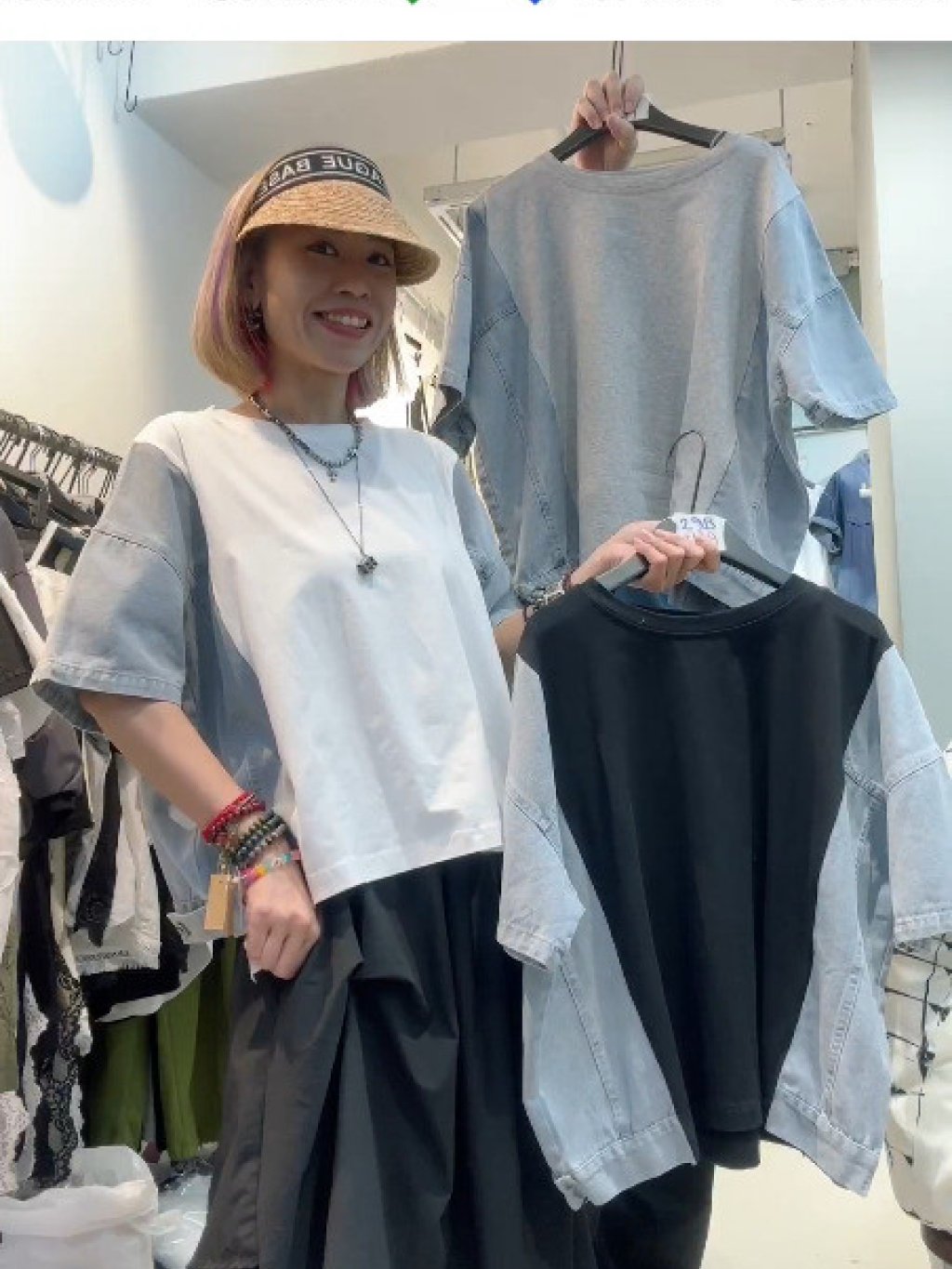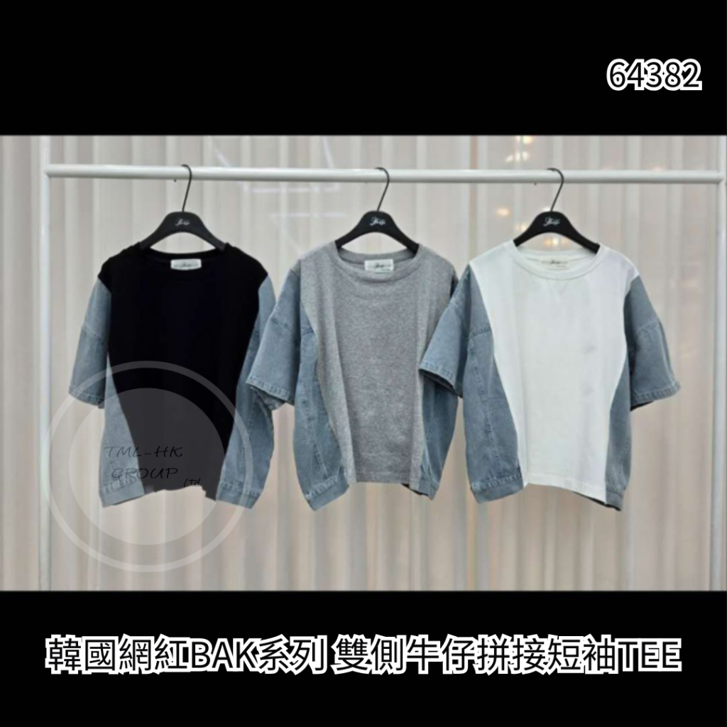 韓國網紅BAK系列 雙側牛仔拼接短袖TEE【買滿5件包郵 | 11/4截單 | 預計5月中至尾到貨 | 20260406A(64382.)】