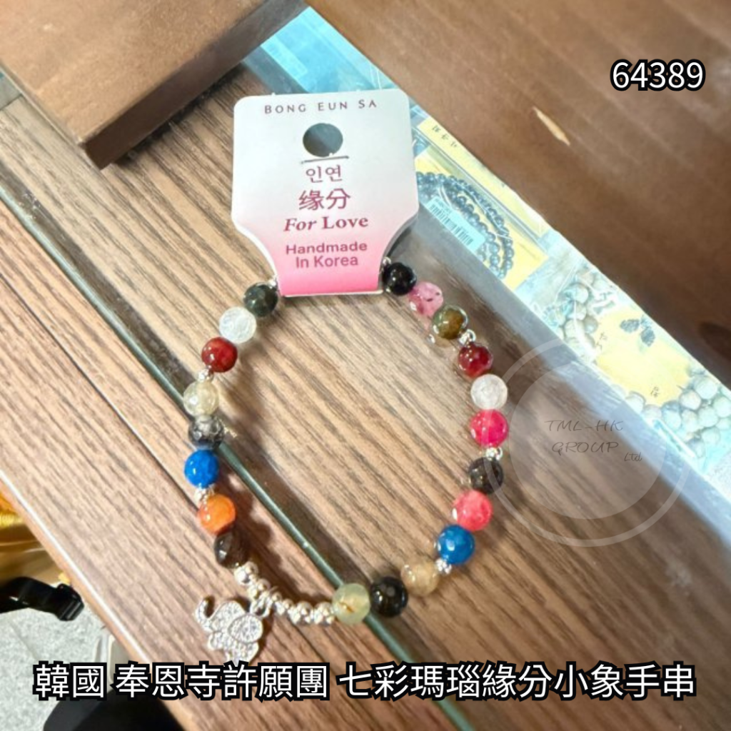 韓國 奉恩寺許願團 七彩瑪瑙緣分小象手串【11/4截單 | 預計5月中至尾到貨 | 20260406A(64389.)】
