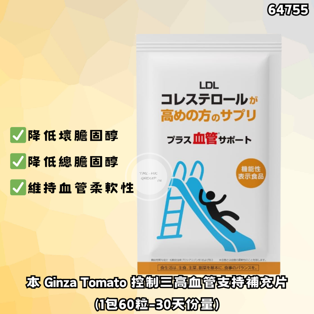 日本 Ginza Tomato 控制三高血管支持補充片(1包60粒-30天份量)【買滿$1000包郵 | 22/4截單 | 預計5月尾到貨 | 20260417A(64755.)】