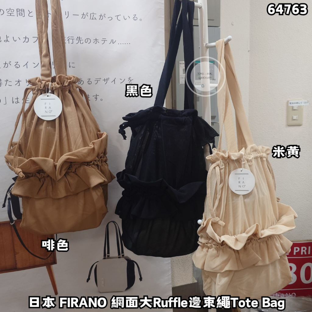 日本 FIRANO 網面大Ruffle邊束繩Tote Bag()【福利款 | 19/4截單 | 預計6月中至尾到貨 | 20260415A(64763.)】