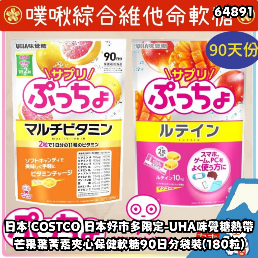 日本 COSTCO 日本好市多限定-UHA味覺糖熱帶芒果葉黃素夾心保健軟糖90日分袋裝(180粒)【買滿10件包郵 | 18/4截單 | 預計6月尾到貨 | 20260413(64891.)】