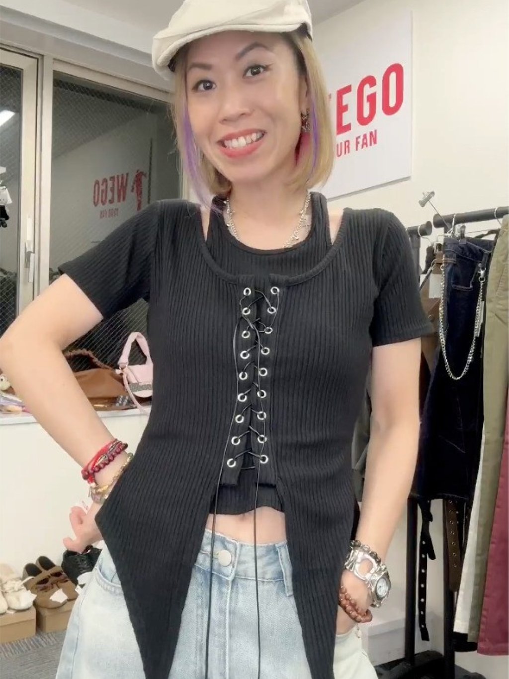日本 WEGO 中間綁帶羅紋短袖衫 (FG26SS-0614)【買滿$1500包郵 | 19/4截單 | 預計6月中至尾到貨 | 20260414A(65166.)】