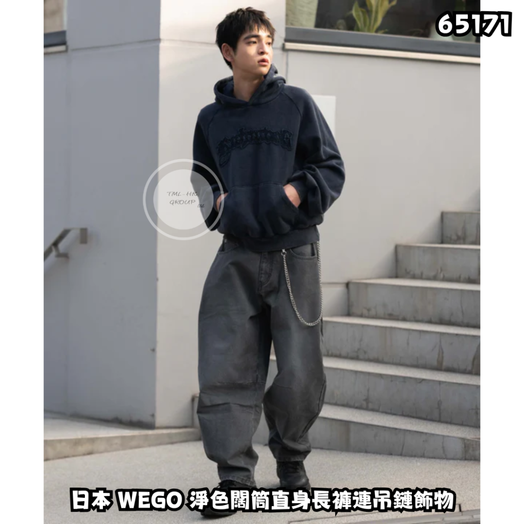 日本 WEGO 淨色闊筒直身長褲連吊鏈飾物 (WE26SS12-M0006)【買滿$1500包郵 | 19/4截單 | 預計6月中至尾到貨 | 20260414A(65171.)】