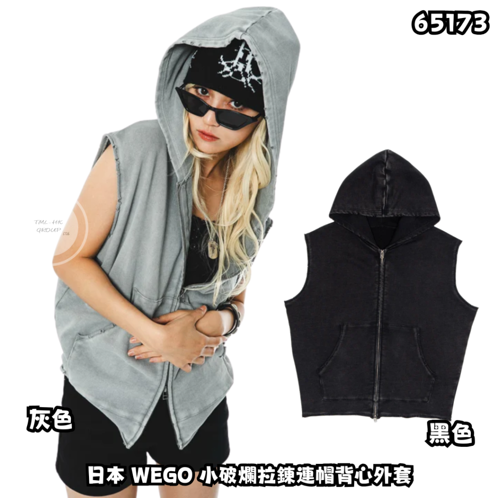 日本 WEGO 小破爛拉鍊連帽背心外套 (SH26SM04-M0003)【買滿$1500包郵 | 19/4截單 | 預計6月中至尾到貨 | 20260414A(65173.)】
