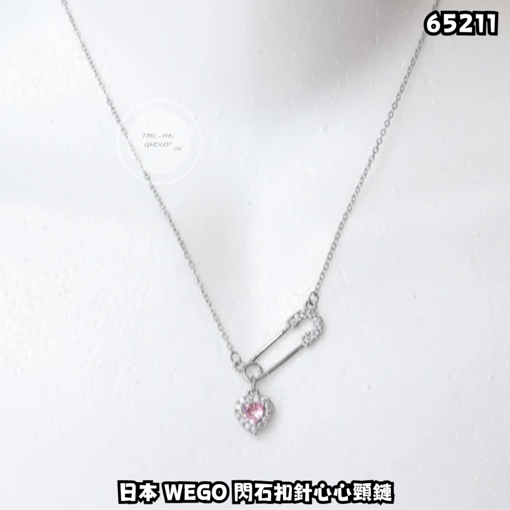 日本 WEGO 閃石扣針心心頸鏈(MO24SS04-SG0320)【買滿$1500包郵 | 19/4截單 | 預計6月中至尾到貨 | 20260414A(65211.)】