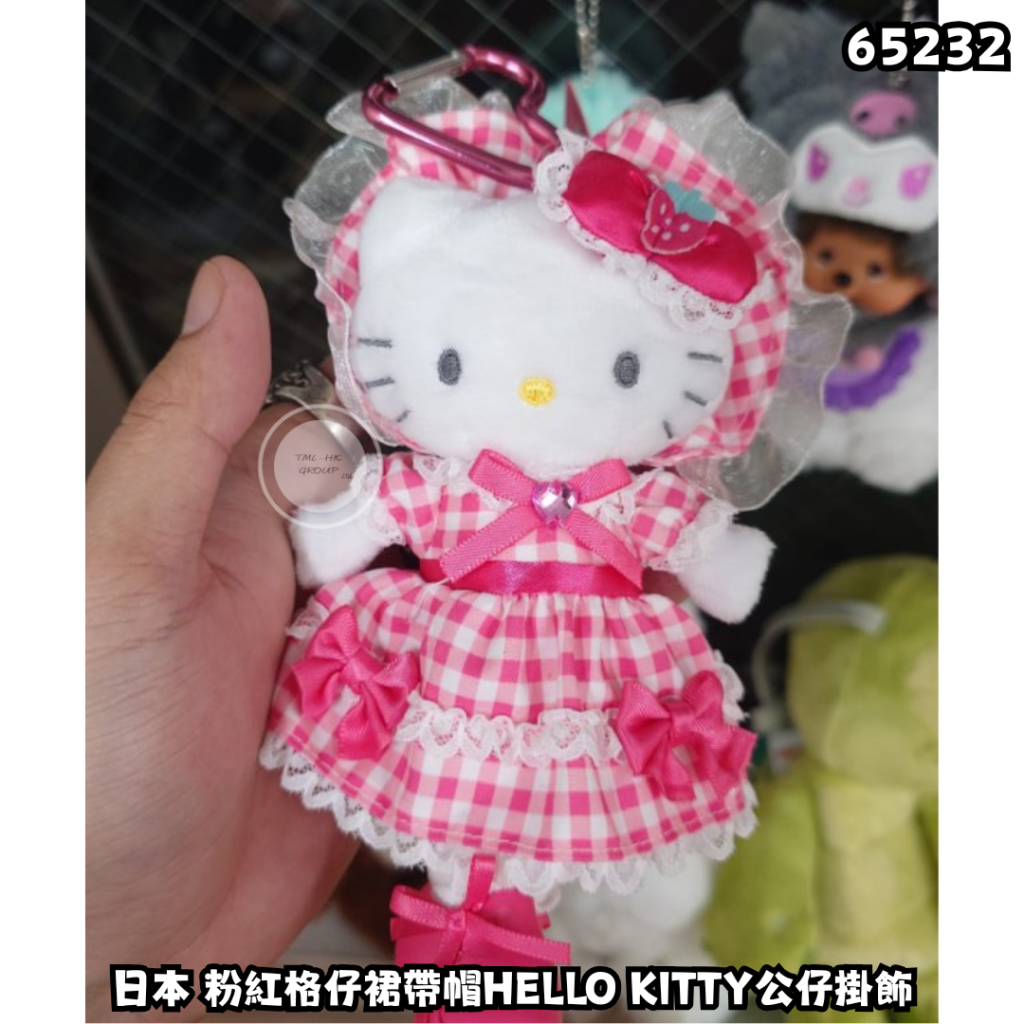 日本 粉紅格仔裙帶帽HELLO KITTY公仔掛飾【買滿$1500包郵 | 19/4截單 | 預計6月中至尾到貨 | 20260414A(65232.)】