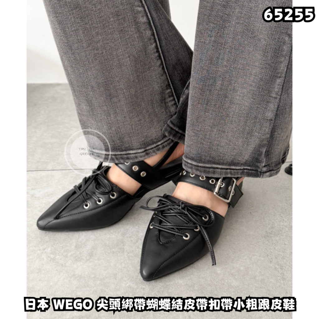 日本 WEGO 尖頭綁帶蝴蝶結皮帶扣帶小粗跟皮鞋(WE26SM04-SG0004)【買滿$1500包郵 | 19/4截單 | 預計6月中至尾到貨 | 20260414A(65255.)】