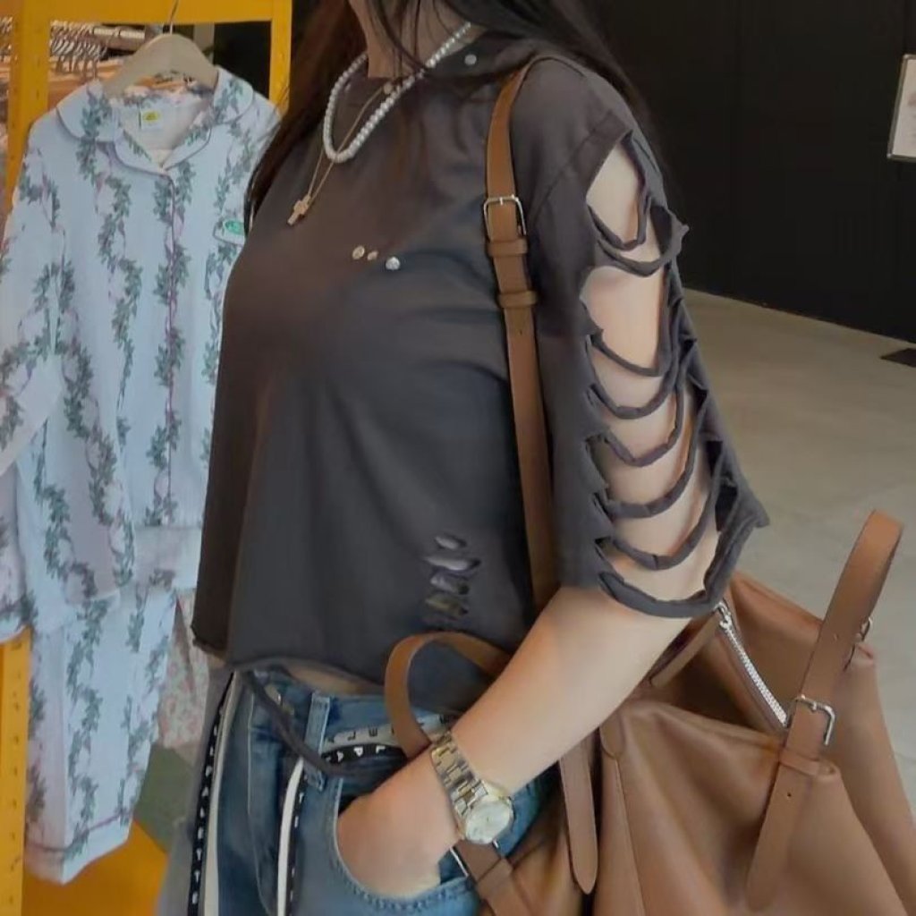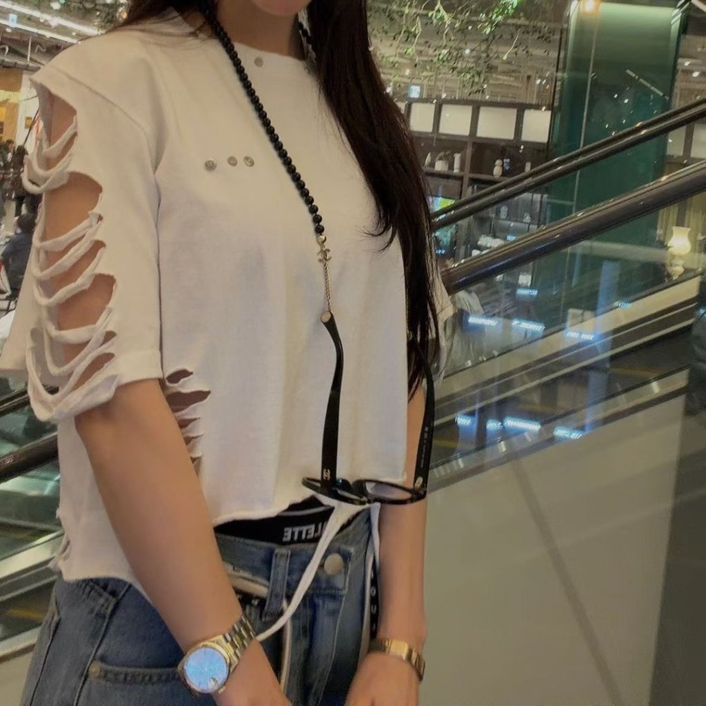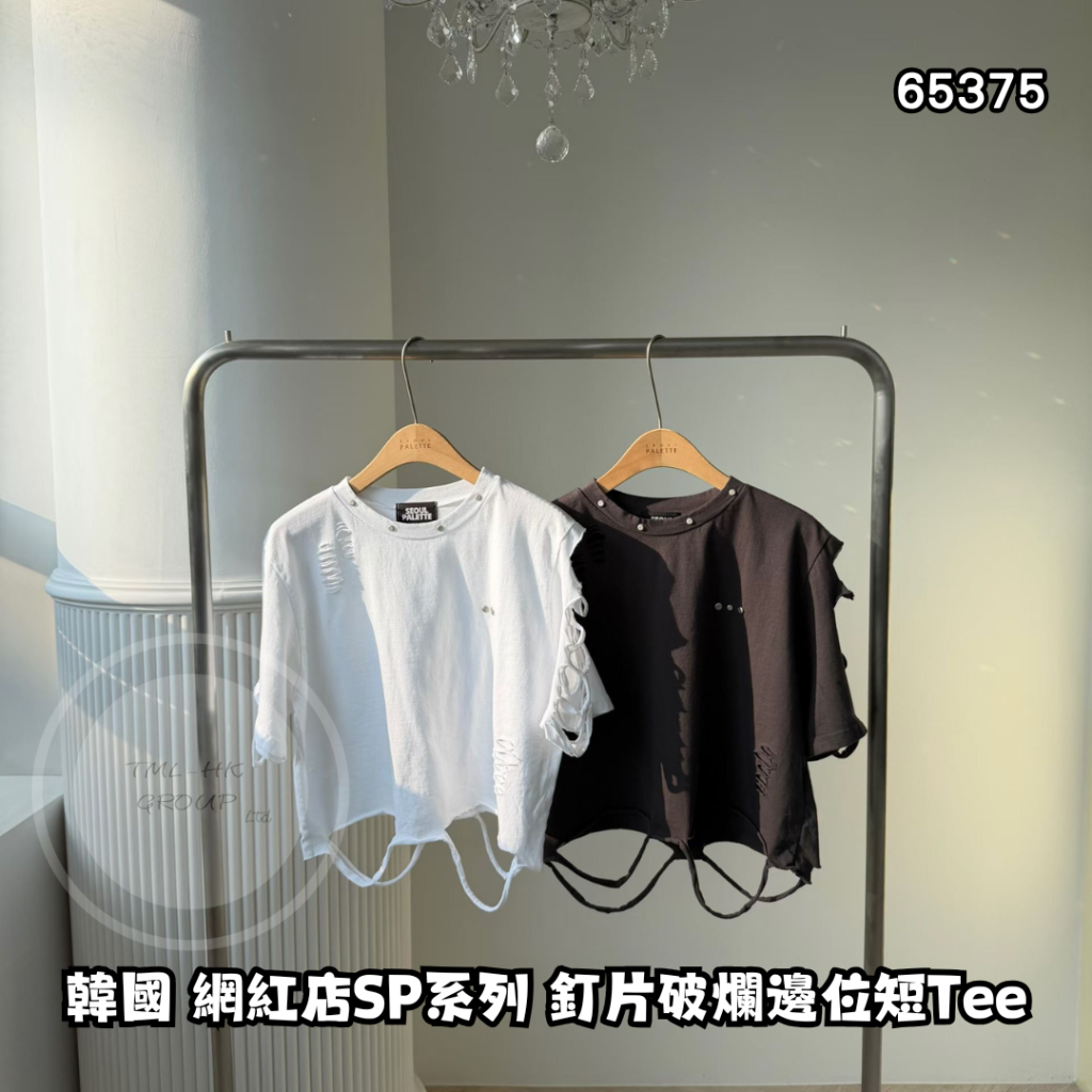 韓國 網紅店SP系列 釘片破爛邊位短Tee【五件包郵 | 28/4截單 | 預計6月初到貨 | 20260423B(65375.)】