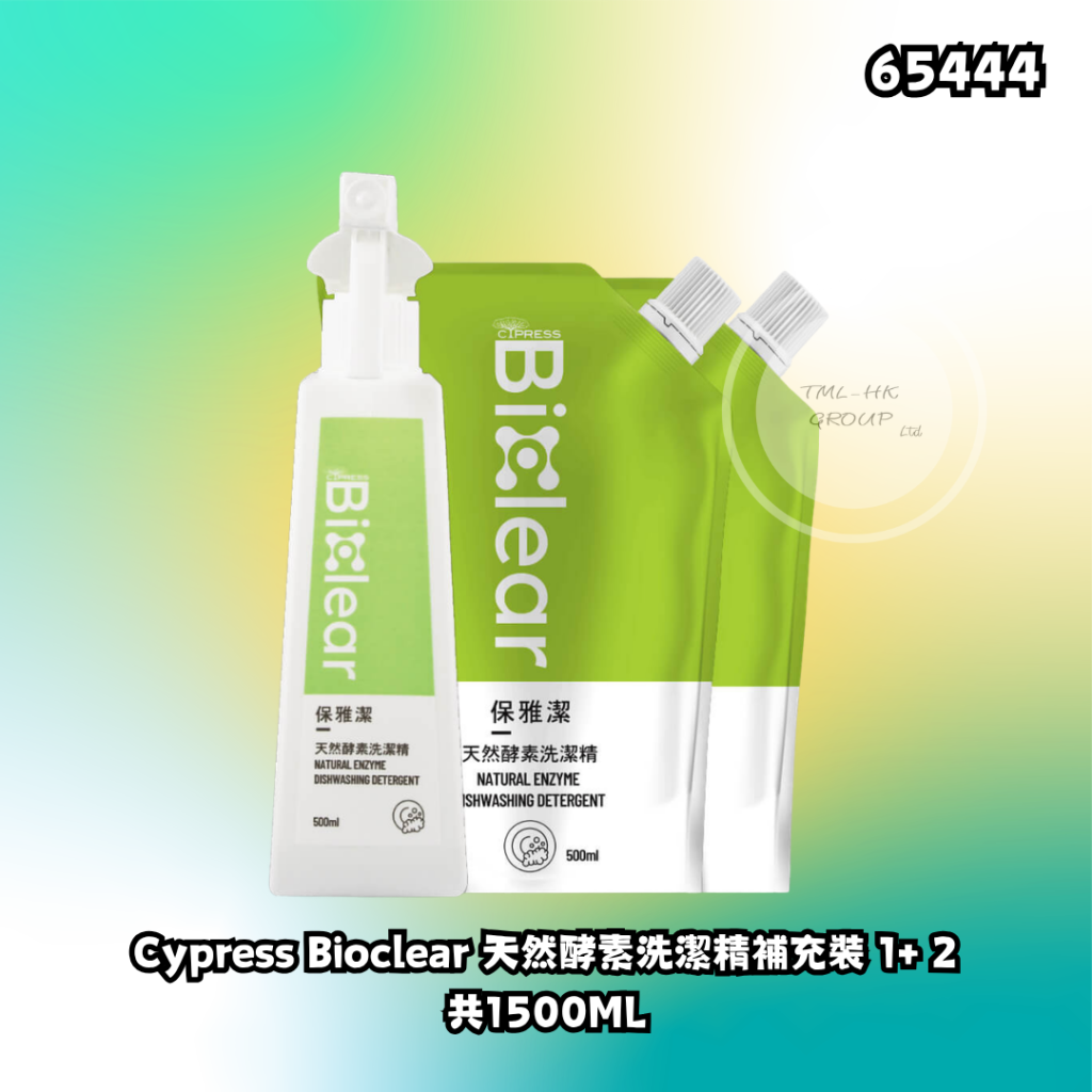 驅蚊專場 Cypress Bioclear 天然酵素洗潔精補充裝 1+ 2 Natural Enzyme Dishwashing Detergent Refill 1500ML【23/4截單 | 預計5月中至尾到貨 | 20260418A(65444.)】