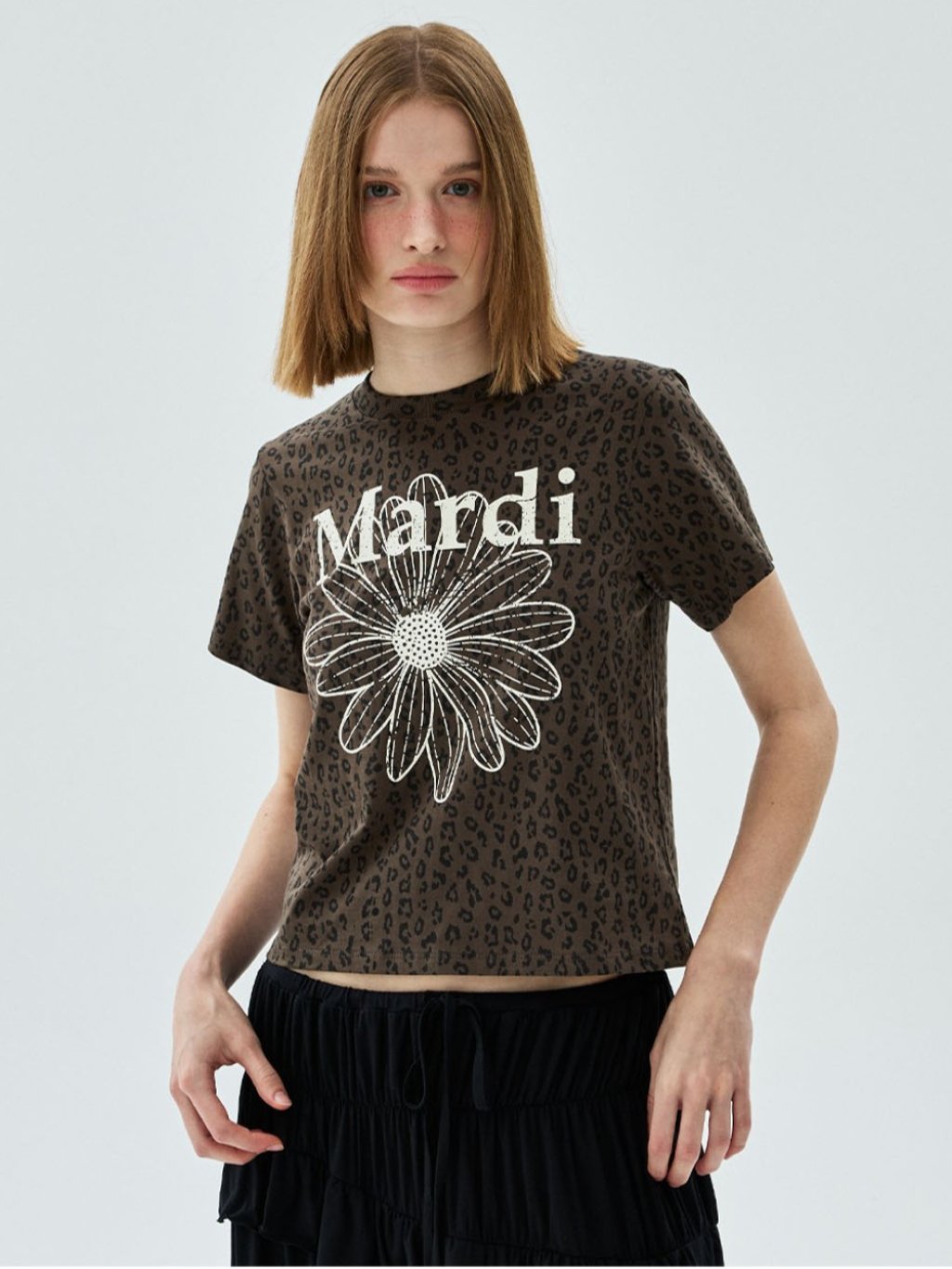 🔥快閃MARDI🔥韓國 MARDI SLIM TSHIRT LEOPARD FLOWERMARDI CRACKED【25/4截單 | 預計6月初到貨 | 20260423A(65485.)】