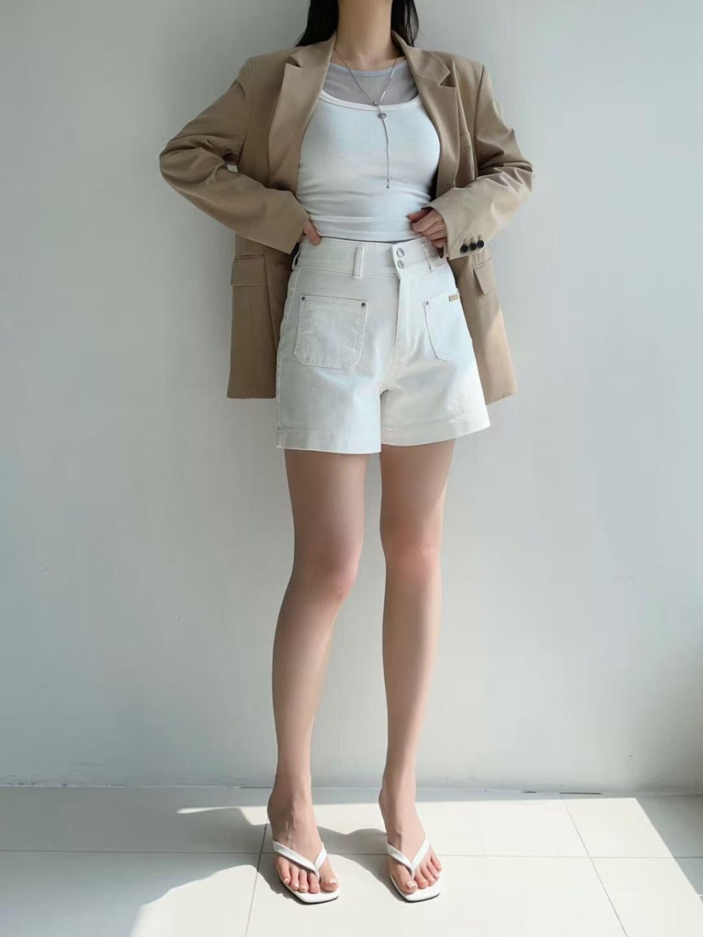 主頁 韓國 How LUK 橡筋腰雙鈕扣明線牛仔短褲(6087)【30/4截單 | 預計6月中至尾到貨 | 20260425B(65532.)】